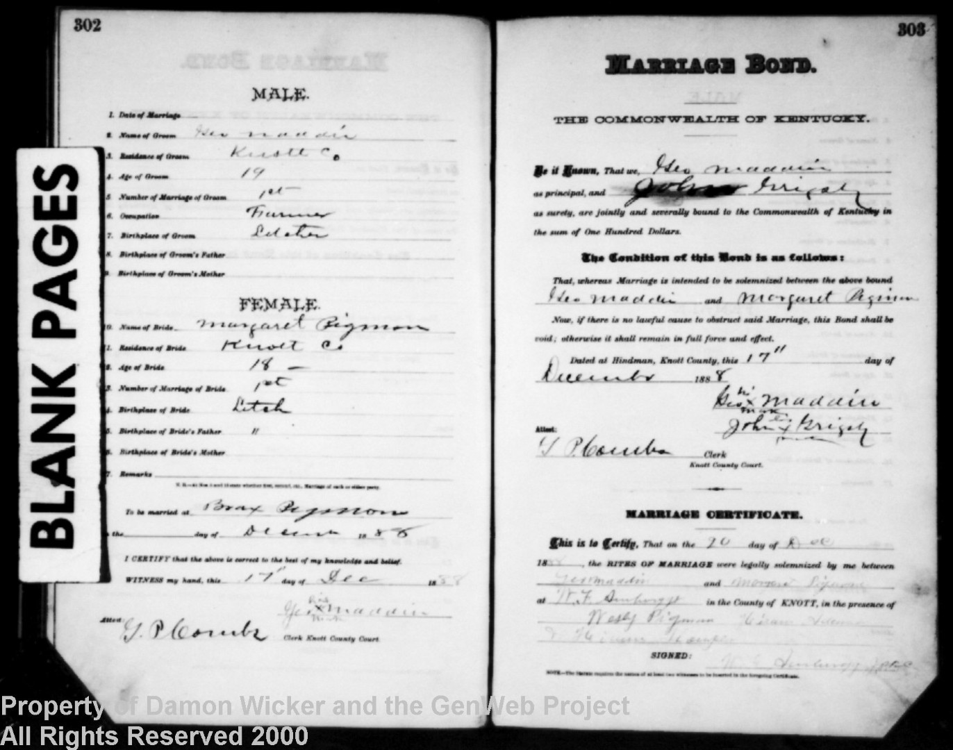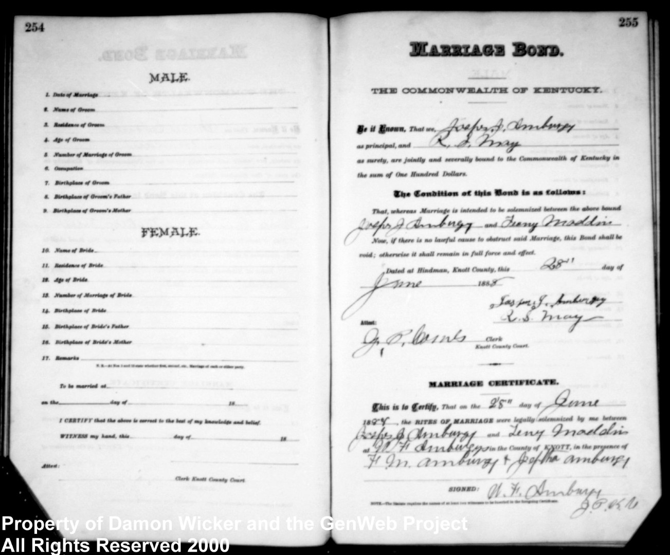 | Amburgey | Thomas | Madden | Sylva | 1889-12-21 | ||||||