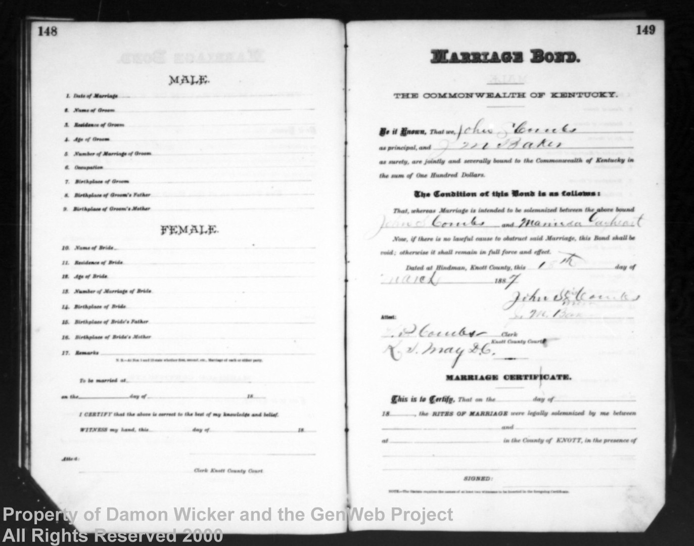 | Combs | WilliamD | Fugate | Arta | 1898-05-27 | ||||||