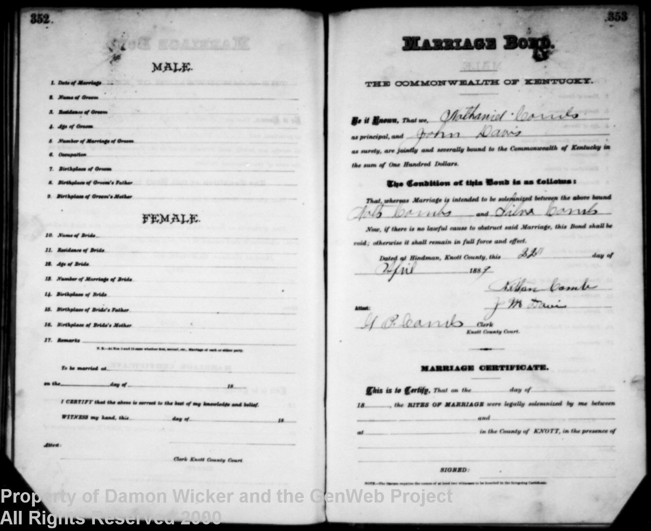 | Combs | William | Young | Martha | 1891-08-05 | ||||||
