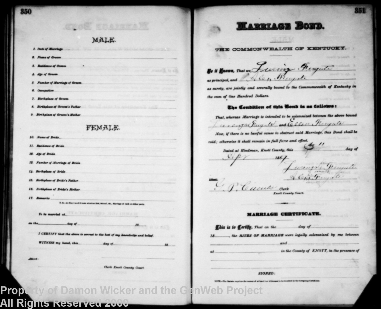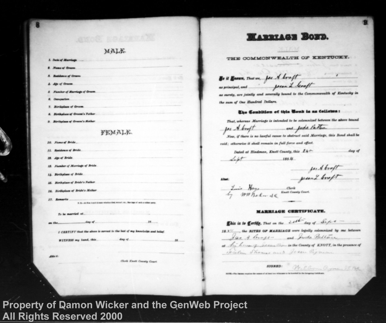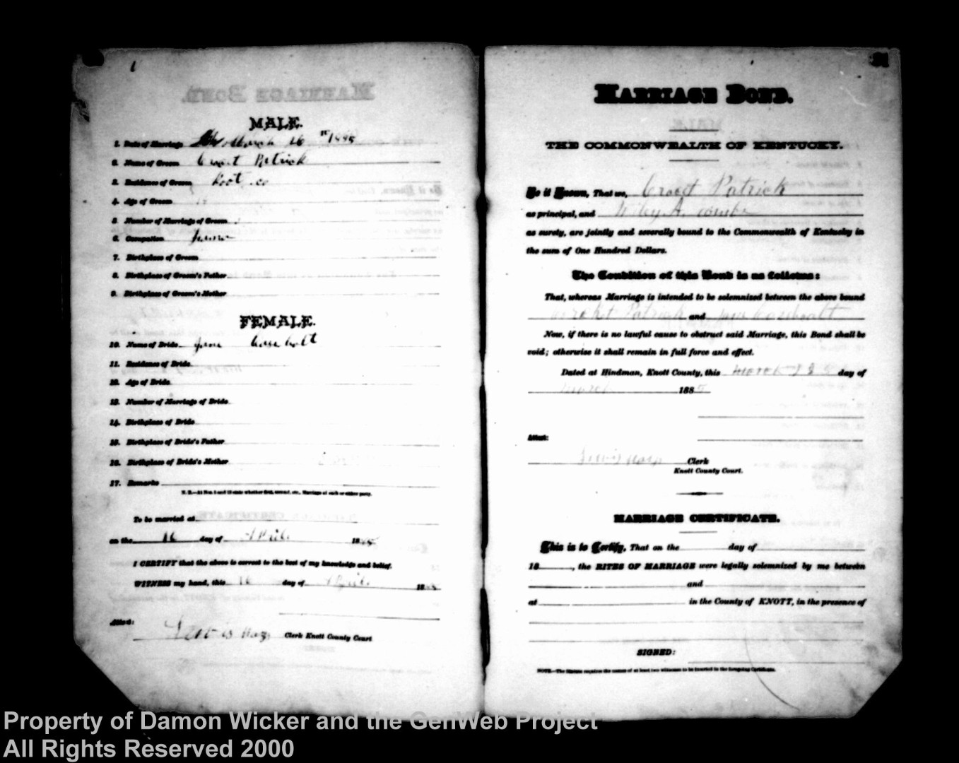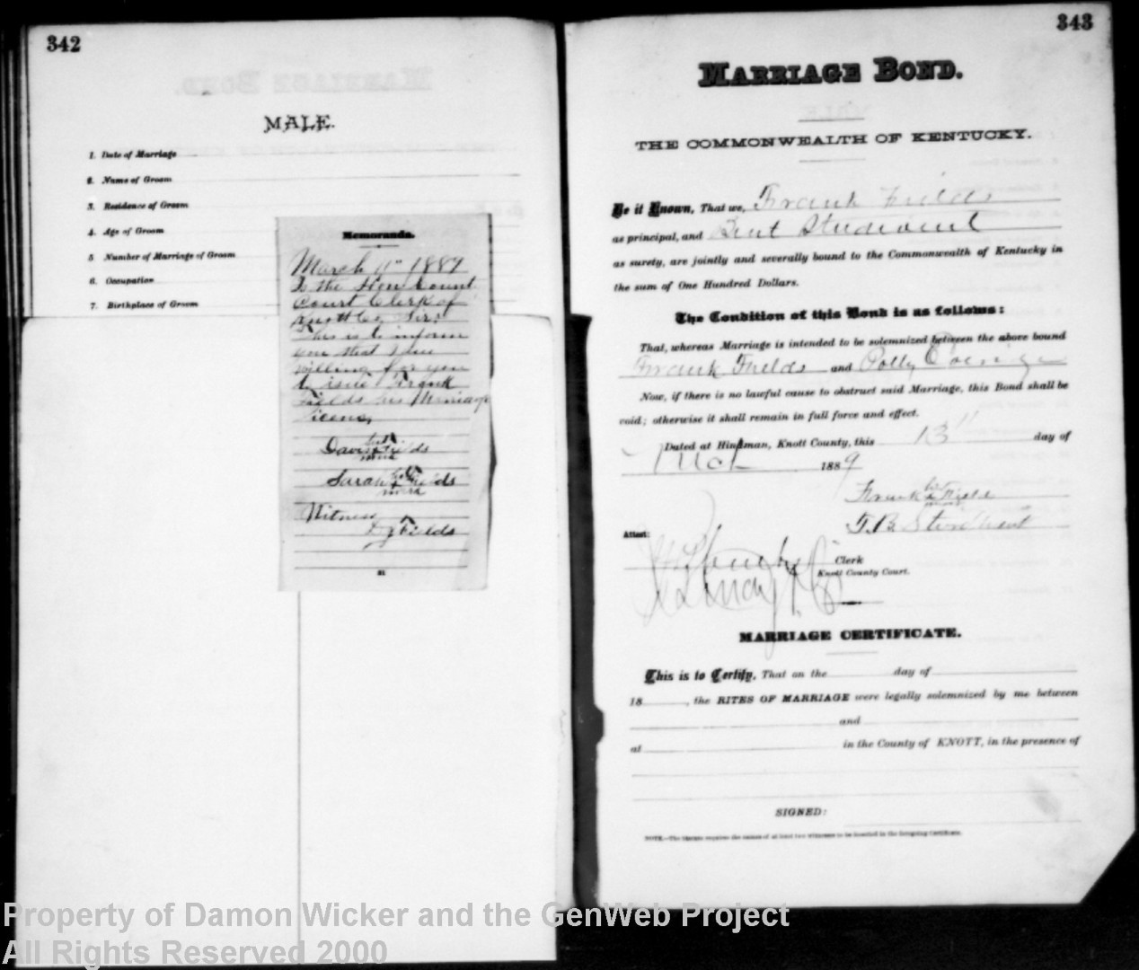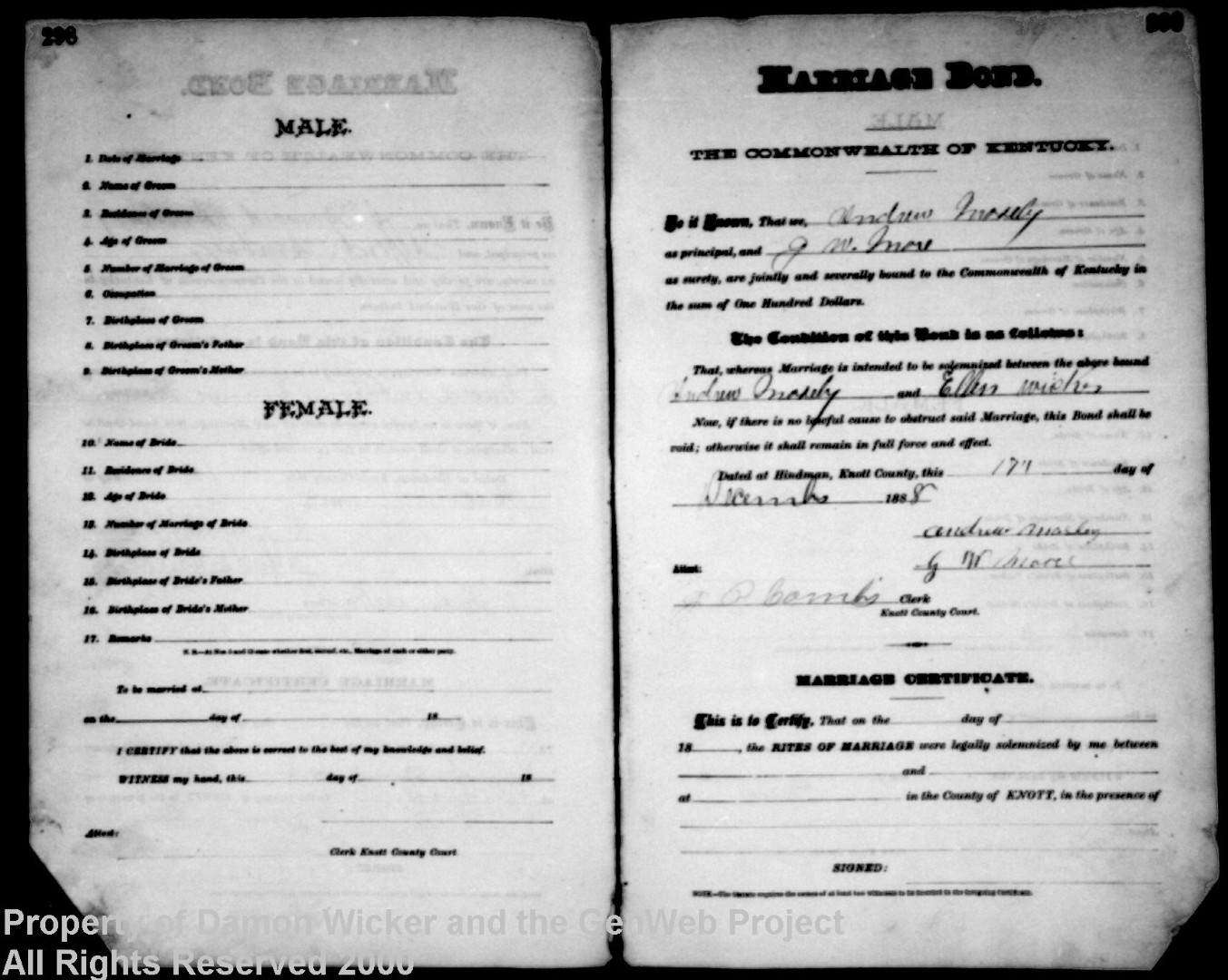 | Wicker | J B | Fugate | Louisa | 1898-09-24 | ||||||