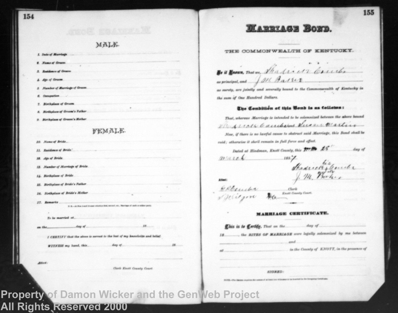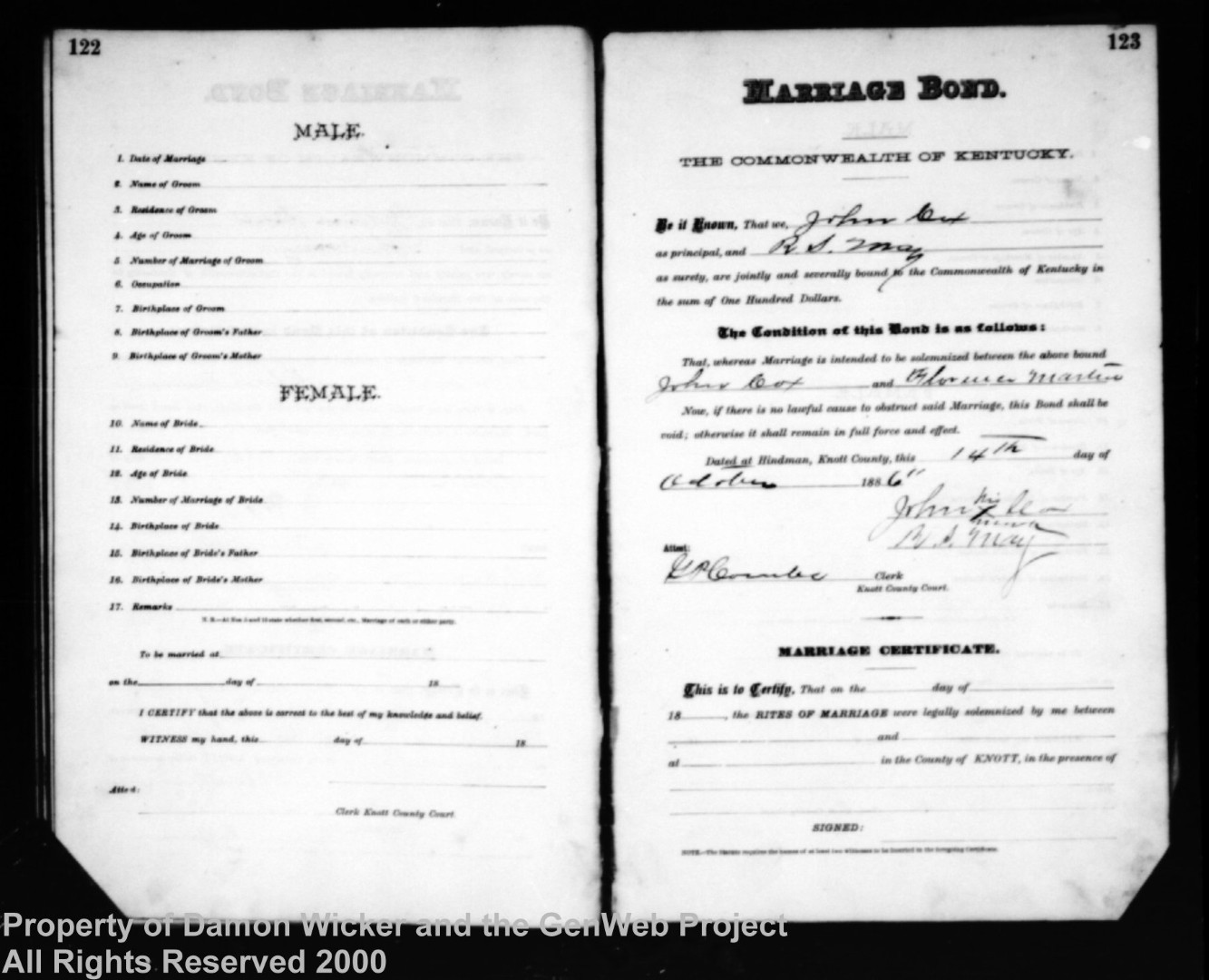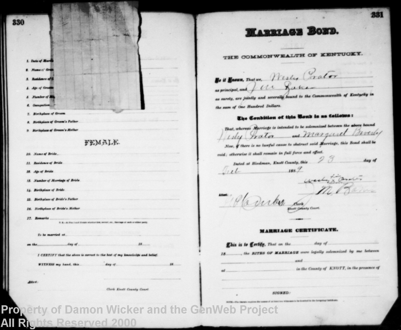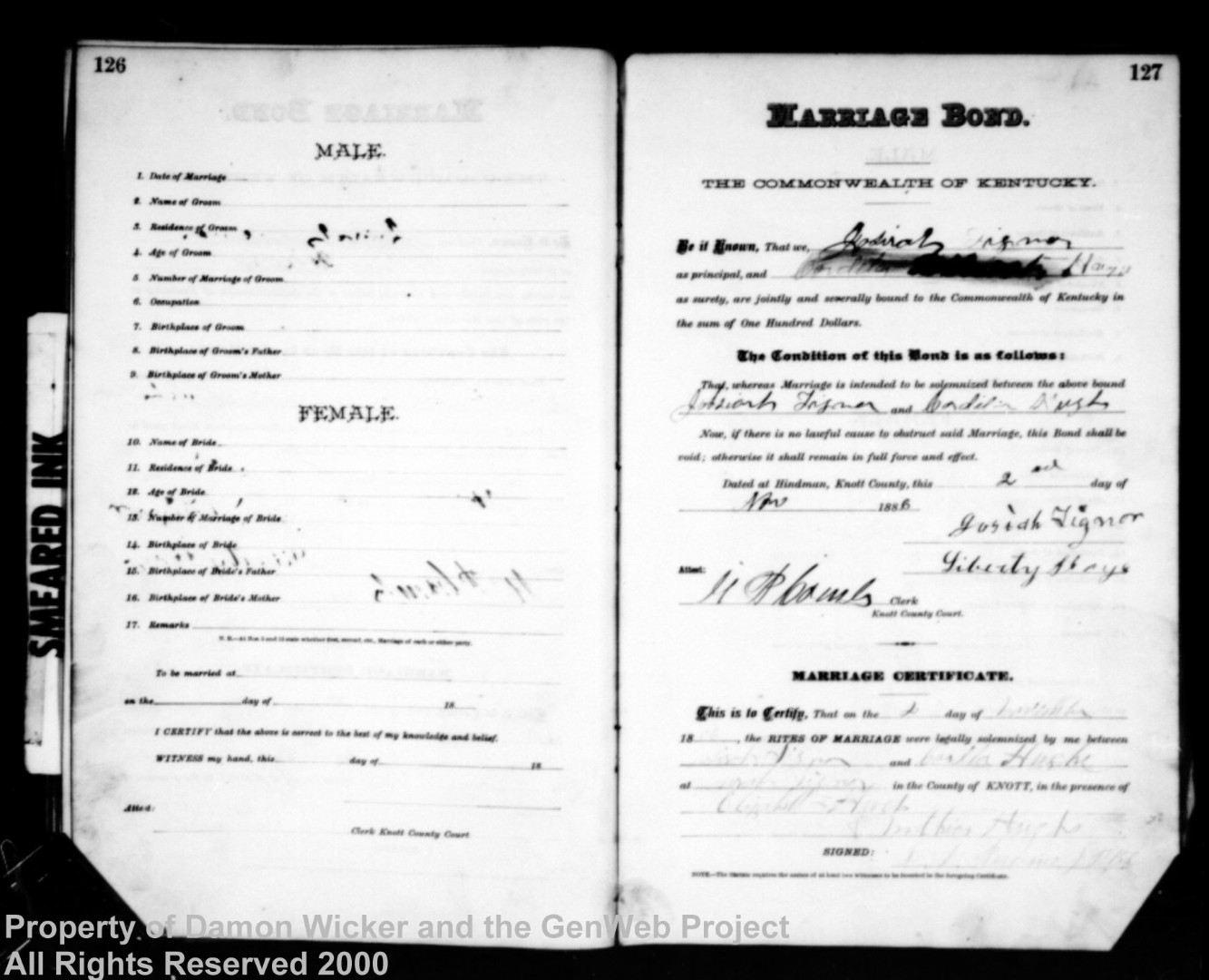 | Wicker | J B | Fugate | Louisa | 1898-09-24 | ||||||