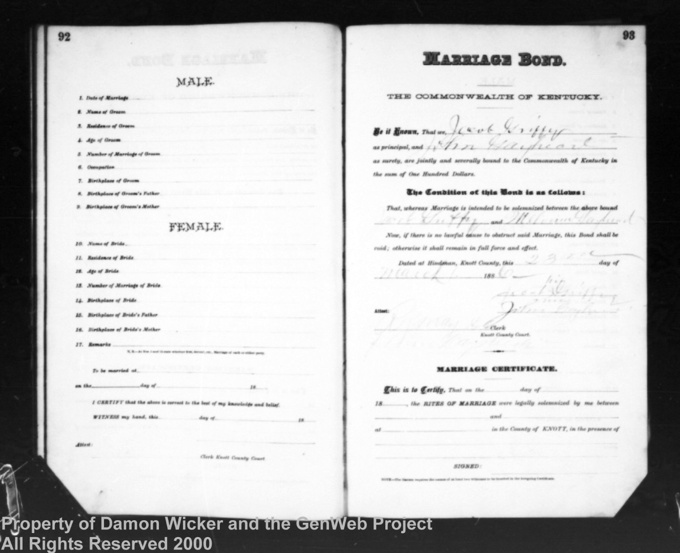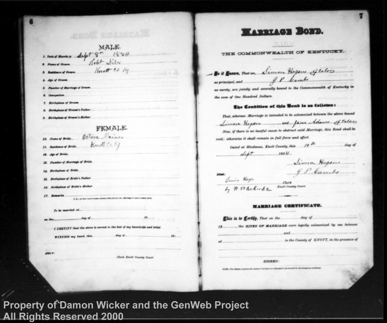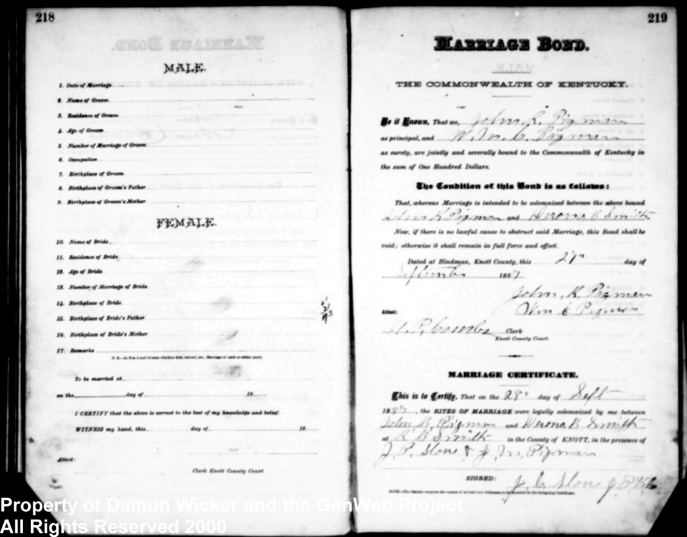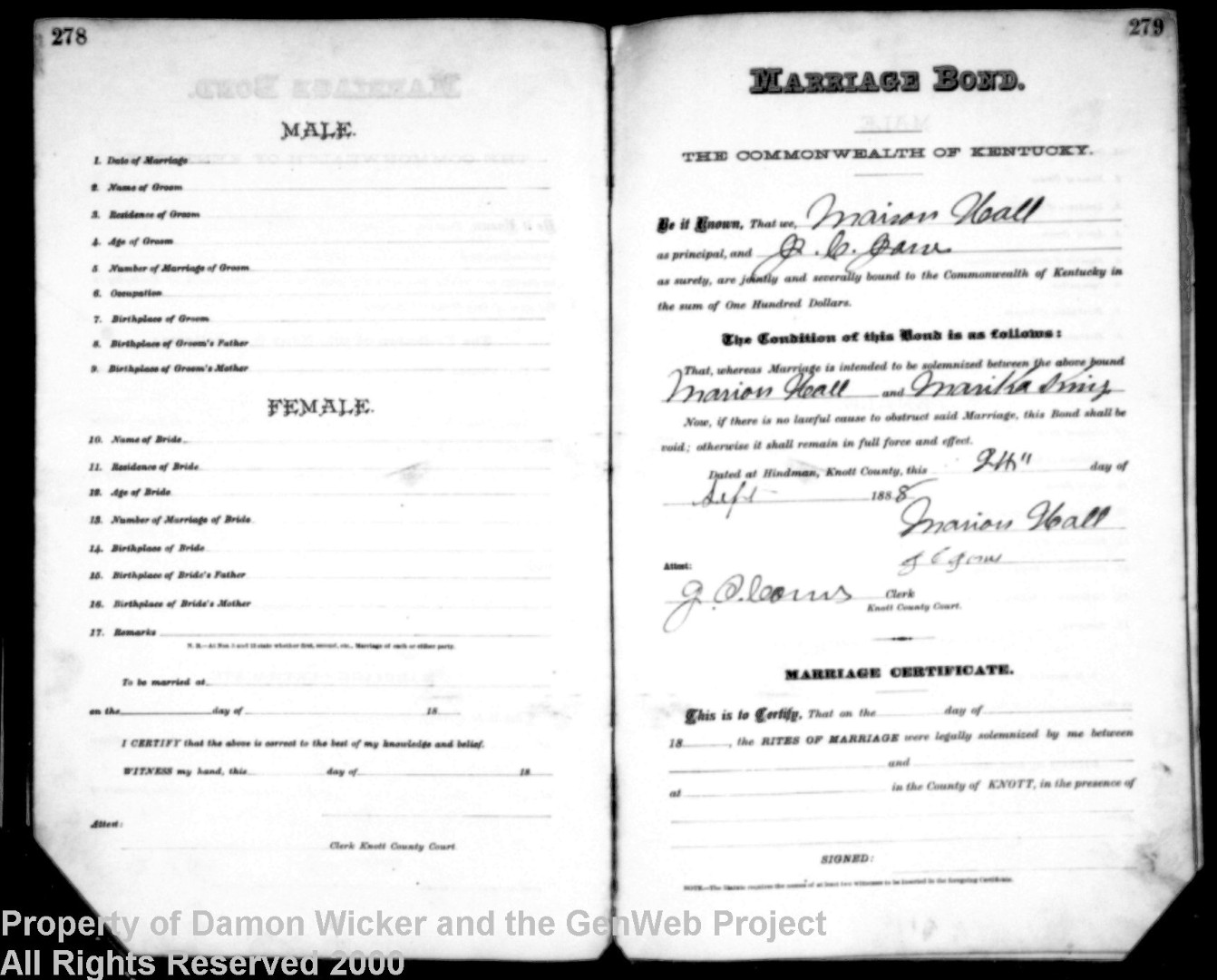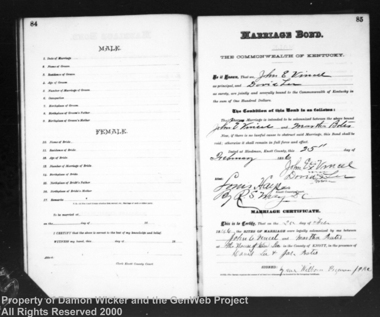 | Wicker | J B | Fugate | Louisa | 1898-09-24 | ||||||