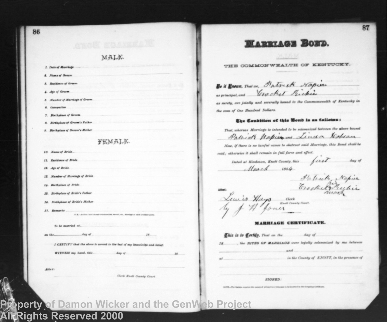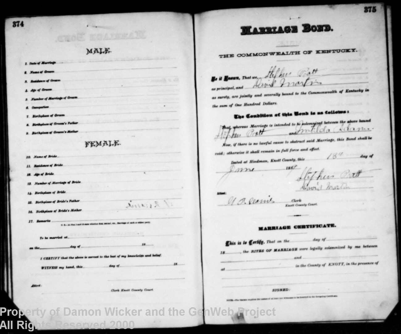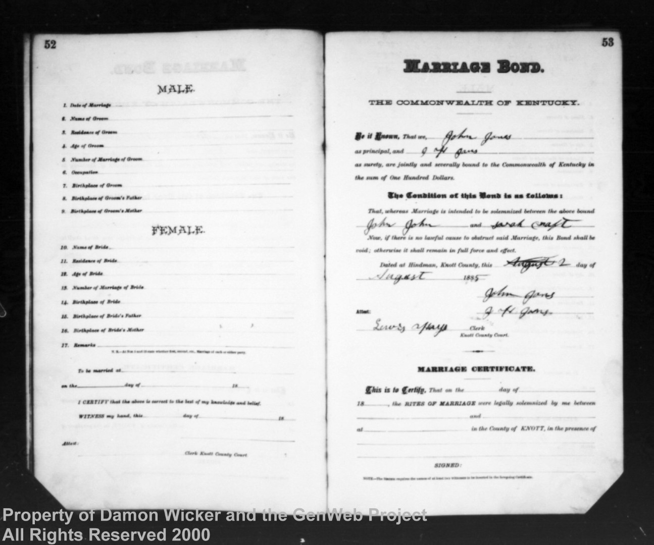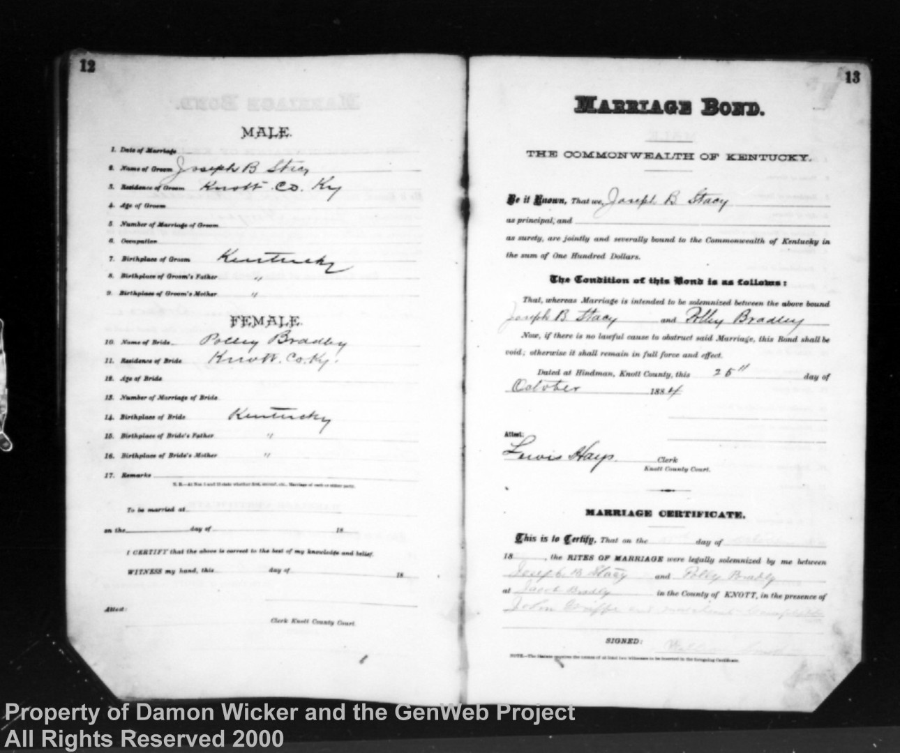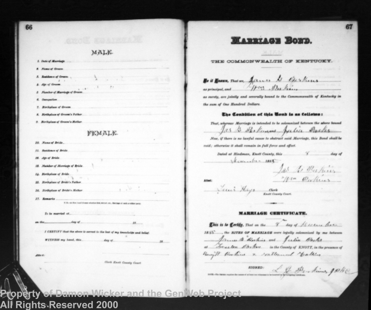 | Wicker | J B | Fugate | Louisa | 1898-09-24 | ||||||