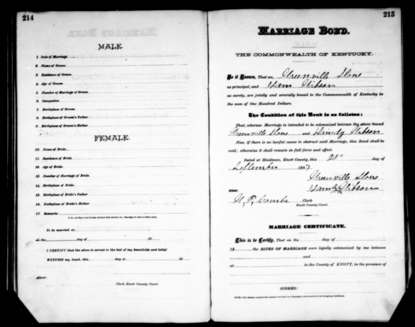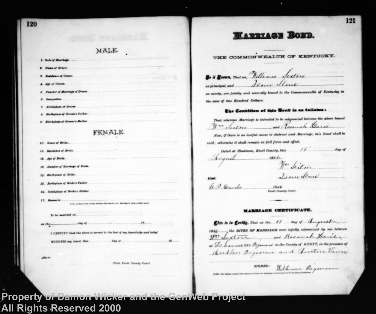 | Singleton | Henry | Combs | Elizabeth | 1890-08-29 | ||||||