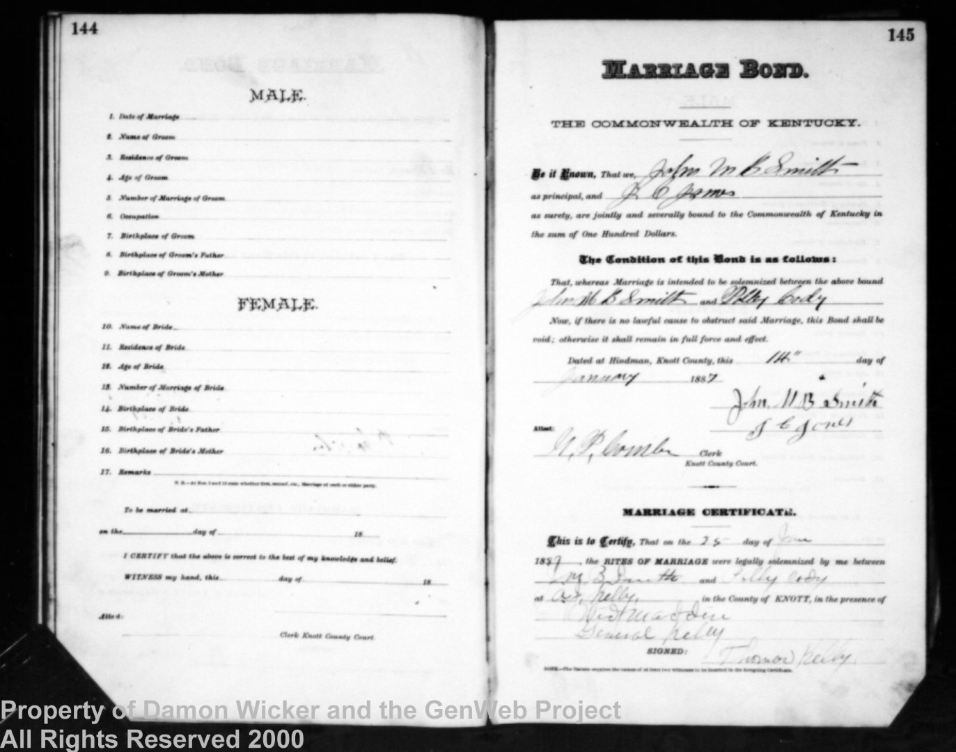 | ♥ | Baker | J M | Childers | Nannie | 1889-09-07 | |||||