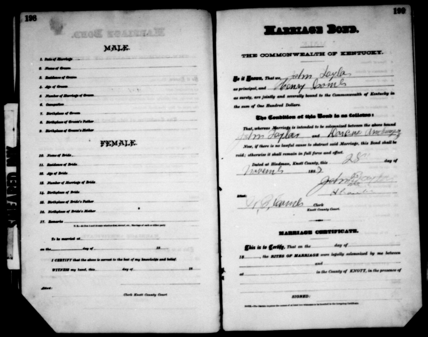 | Amburgey | Charlie | Clark | Sarah | 1890-01-30 | ||||||