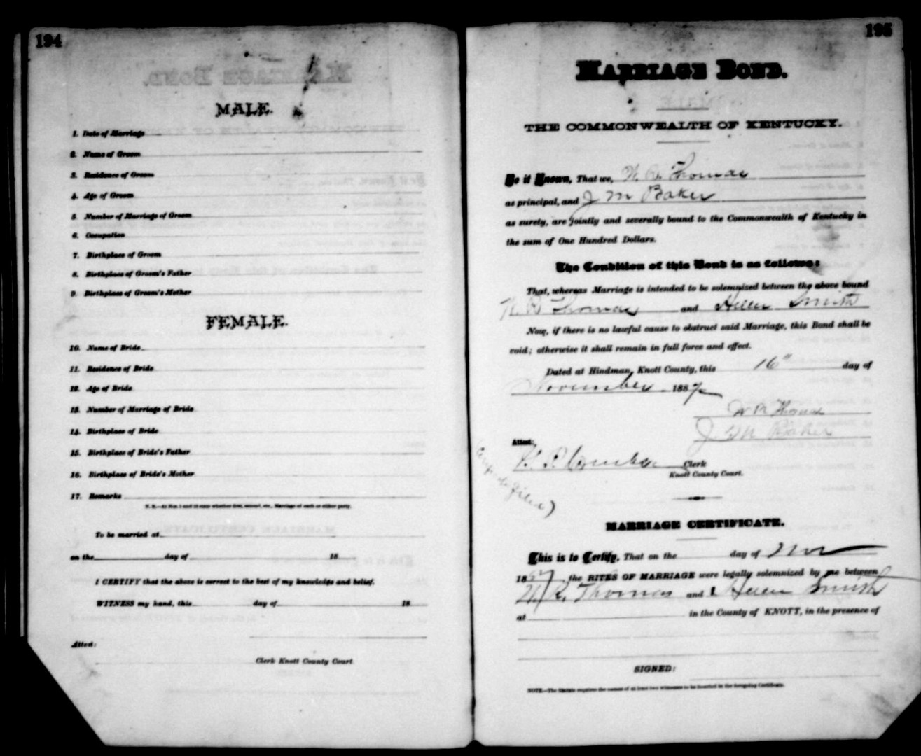 | Thacker | William | Owens | Martha | 1899-07-12 | ||||||