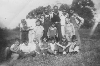 Cave Spring School, Clinton County, KY. This is a group of the boys only. My two uncles are in this, they are Lester McKinley Elmore and Joe Stanton Elmore. Joe has his arm around Lester and they are the 1st two on the back row. |