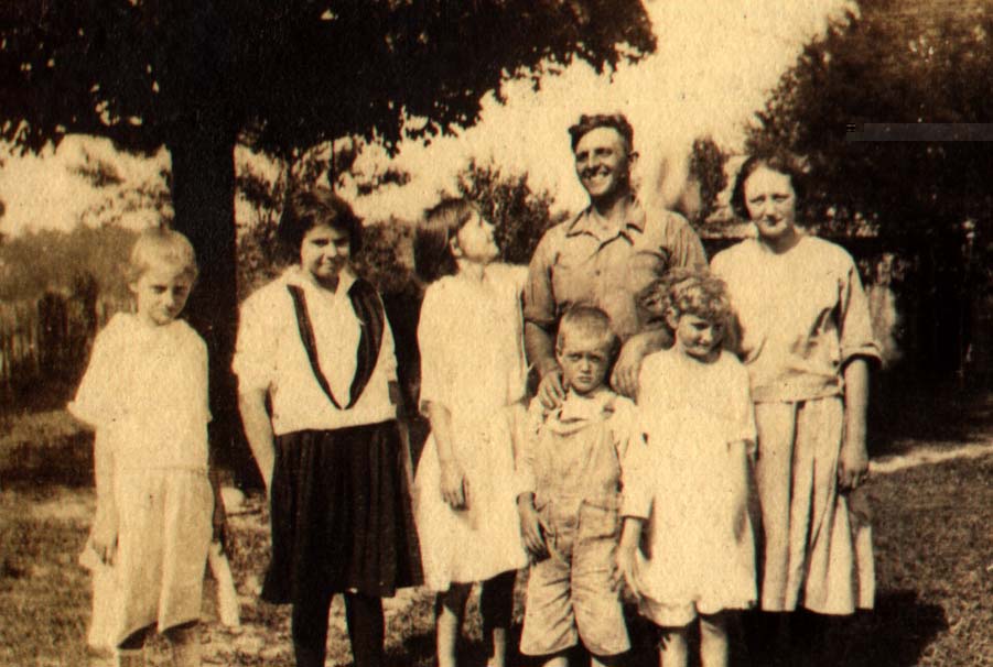 Charles Sawyers (1896-1953), the first son of Frederick Hartwell Sawyers and Nancy Leann Guthrie Sawyers of Clinton County, KY is the man in the center of the picture. Leta Sawyers is at the far left. She was the daughter of Ed Oscar Sawyers and Nora Sawyer. Nora was a daughter of Frederick Hartwell Sawyers and his first wife, Sarah Mackey Sawyers. Ed was the son of James Walker Sawyers and Mary Olive Griffin Sawyers. This picture was taken about 1920. Does anyone recognize the children in the picture? |