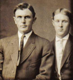 Photo of Elisha and Elmer Wray. Elisha Wray (born 27 Apr 1884, Clinton County, KY; died 15 Jan 1964, Santa Clara Co., CA), son of William Charles Wray and his second wife, Mary Helen Walden. Elmer Wray, (12 Jul 1892, Edgar Co., IL, d. 11 Nov 1935, Dickinson Co., IA), the nephew of Elisha Wray, was the son of William Floyd Wray (who is the sone of William Charles Wray and first wife, Dora Ann Wright) and Malinda Emaline Brooks (daughter of John Brooks, Sr. & Margaret Jane Crockett). The photo was taken around 1905-1907, most likely in Hoopeston, Illinois. This photo was taken sometime around 1907-1910, probably in Hoopeston, Illinois. |