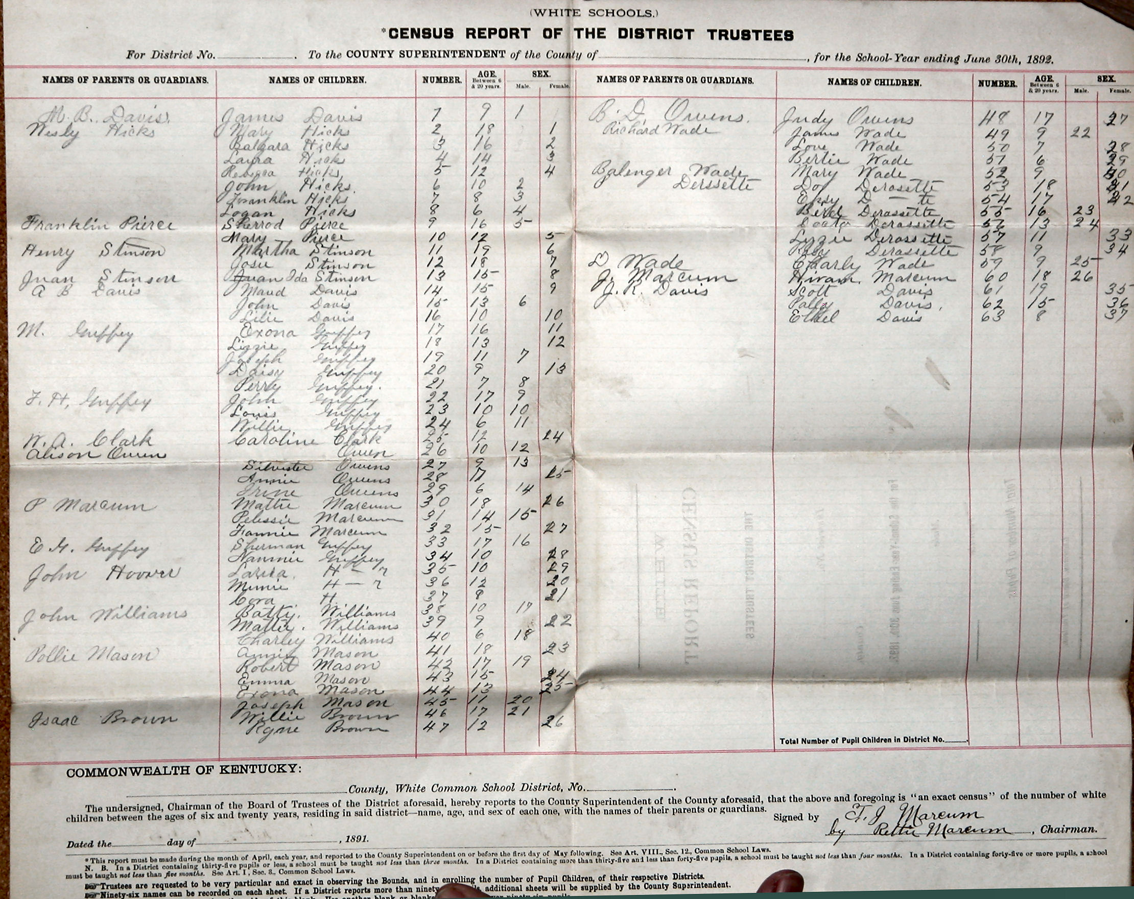 P. Marcum Mattie Marcum 30 18   16