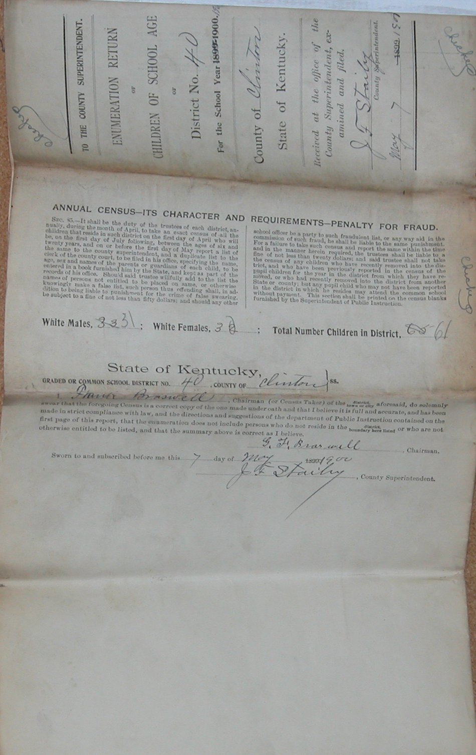 Copyright ©2001- KYGenWeb Project. All files on this website are copyrighted by their submitter and creator. They may be linked to, but may not be reproduced on another website or in any other form, without specific permission of the submitter, owner, publisher and this site moderator. Although public records are as such not copyrightable, the manner in which they are presented, including the notes, comments, etc. are. The information on this site is provided free of charge, by volunteers, for your personal use only.