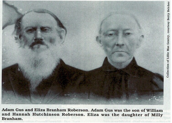 Adam Gus & Eliza Branham Roberson, Adam Gus was the s/o William & Hannah Hutchinson