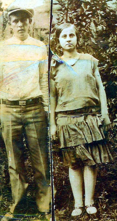 Albert Richard Meade "Alb" and Nellie Lee Compton some time before their marriage in 1932. They had been fighting and Nellie tore the picture in half. After they made up, she taped it back together! Submitted by Lisa Anderson |