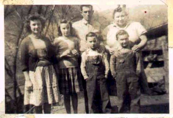 the jct of Rt 122, at Salisbury/Printer Area of Floyd Co, Ky, Picture taken abt1938 Standing: Millard McGlothen & wife, Moses Ann "Kate" SwartzMcGlothen, holding grandson, Morton Parker McGlothen 2nd row: James "Jim " McGlothen & Mildred McGlothen, children of Millard & Kate 1st row: CharlesMcGlothen (holding dog) ,s/o Millard & Kate and Aileen Hagans, d/o Claude Hagans Submitted by Carol Howell McGlothen |