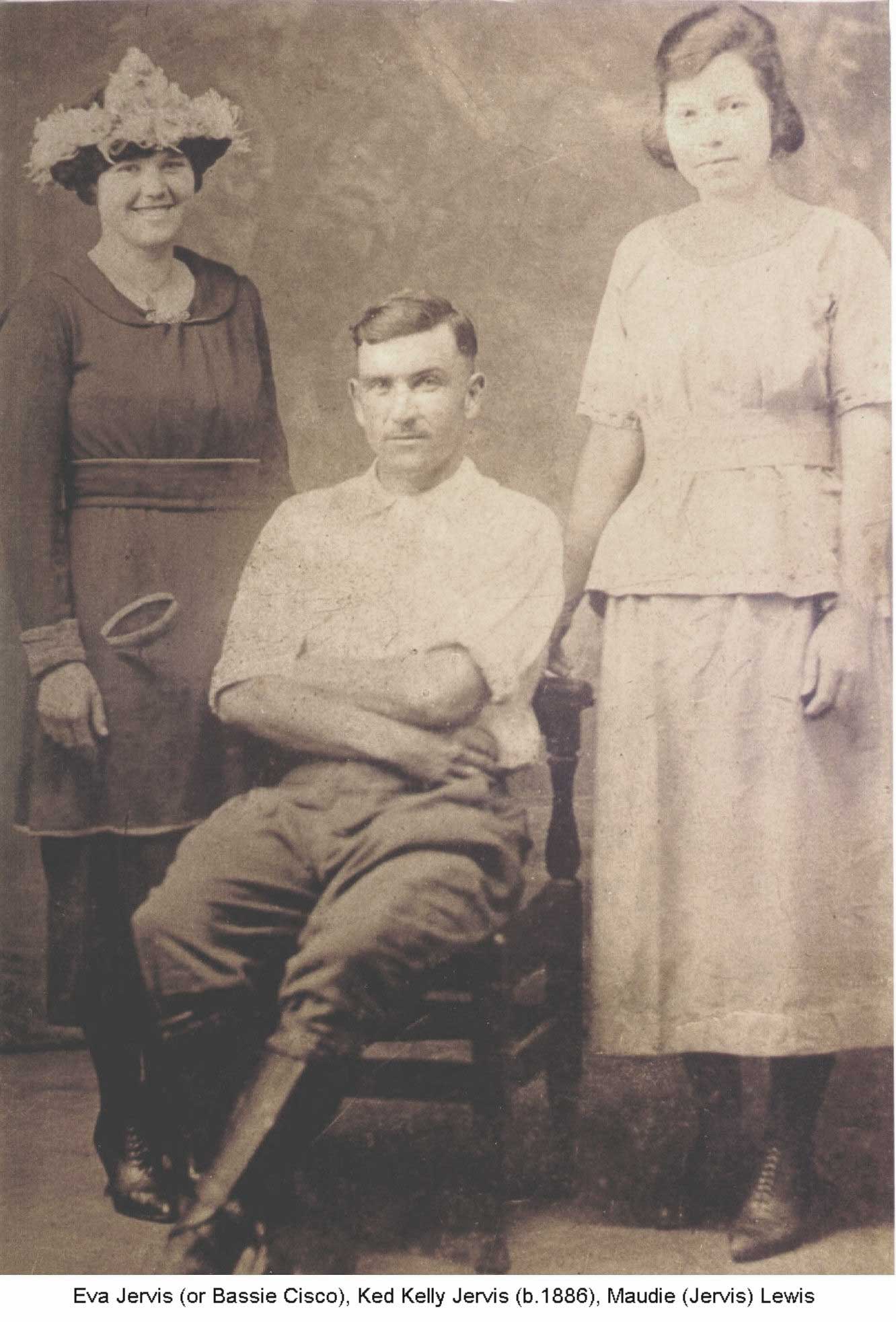 Ked Kelly Jarvis Does anyone know for sure who the first lady is? Ked was the son of George W. and Mary F. (Spears) Jervis. He was married to Bertha (Dials) Jervis. Eva and Maudie were either his whole or half sisters. Martha athram777@yahoo.com |