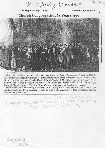 Found in Pictures Belonging to Maudie Watkins after her Death Submitted by Alicia Parsons Far Left Clay Shephard, Man in hat is Maybre Shepherd, Clays brother. Lady next to Maybre is his wife Viola Wadkins or Watkins. The children are there's except for the boy and girl to the far right Info submitted by Dallas Howard |