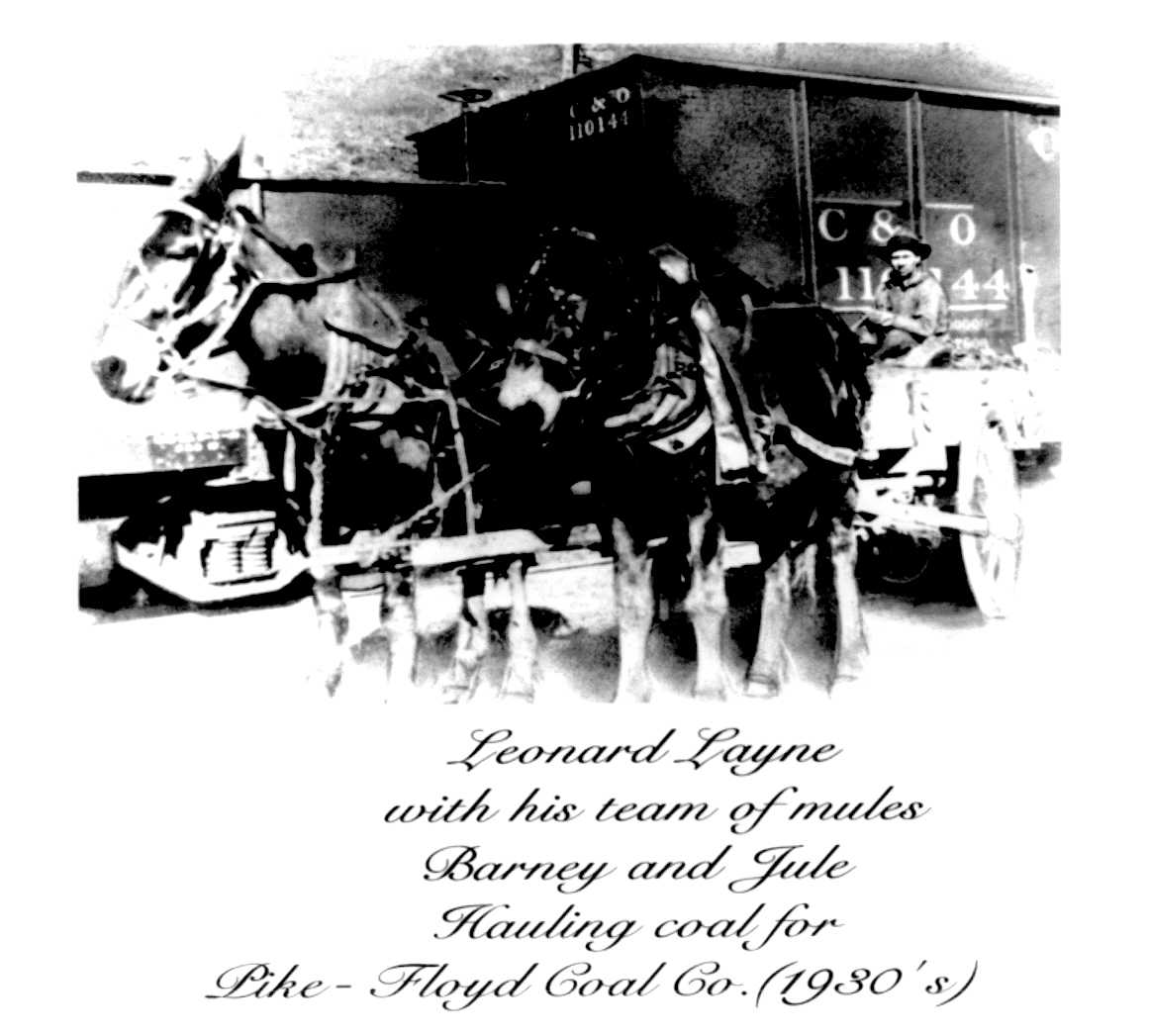 Leonard Layne and mules hauling coal in the 1930's Submitted by Shelia Nellipowitz |