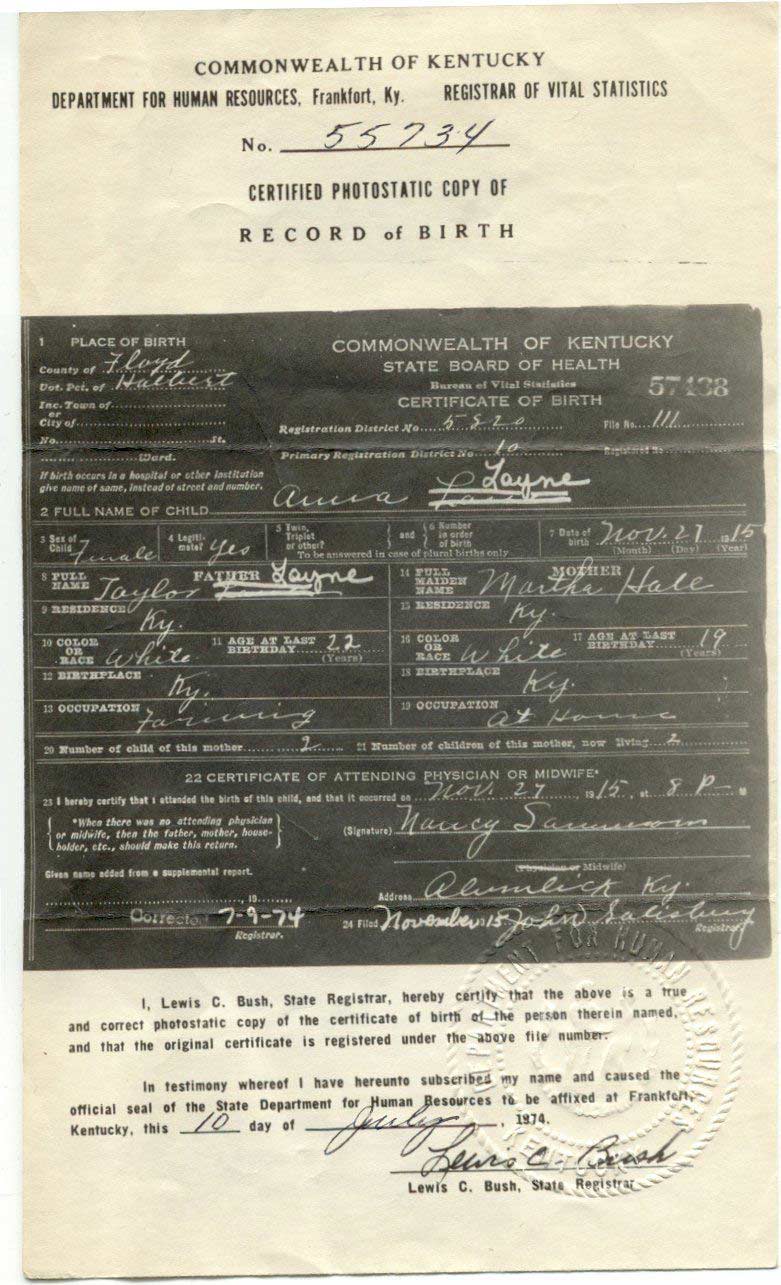 d/o John Stumbo and Frankie Jane Sizemore |