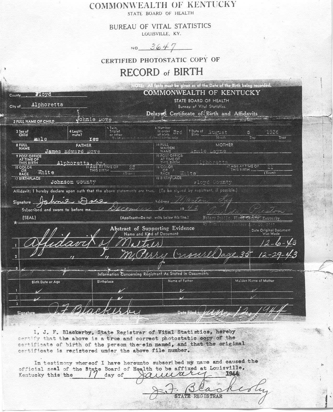 s/o Elmund & Minerva Stephens Blackburn |