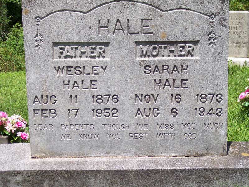 s/o Jacob & Polly Ann Miller Hale |
