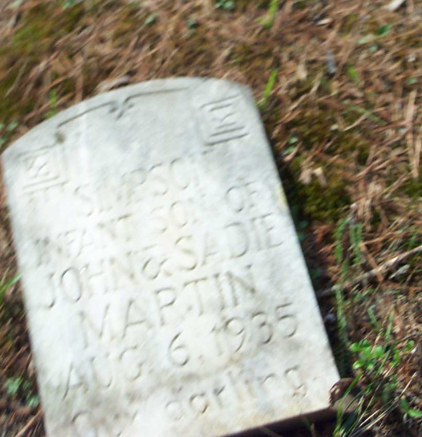 Simpson Martin, Infant s/o John & Sadie Martin, Simpson Boy Martin Cemetery, Branham Creek, on the hill above the old Authur Martin Sr. Home place Submitted by |
