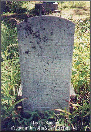 Headstone of Mary Allen Campbell. Daughter of Jeremiah "Jerry" Allen and Ellen "Della" Patton Allen of W. Prestonsburg, KY. b. 11-2-1896 d.8-8-1918. First wife of Charles Zean Campbell. Grave is located in the old W. Prestonsburg Cemetery in Floyd Co. KY (Photo was made July 2001) lydia neal |