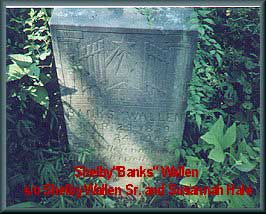 Headstone of Shelby "Banks" Wallen of Floyd Co. KY b.4-29-1870 d.2-24-1945 s/o Shelby Wallen and Susannah Hale. Married Rebecca Belle "Belle" Gearheart 12-31-1894 Buried at Old W. Prestonsburg Cemetery Floyd Co. KY (Photo was made July 2001) lydia neal |