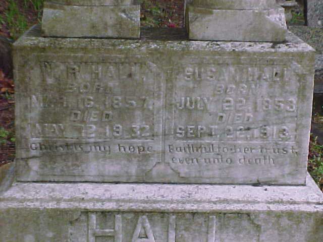 The headstone says Susan Hall but her name was Susannah. d/o Rutha Hall & Martin Thornsberry. Rev. William Riley "Red Will" Hall III was the son of William Riley Hall Jr. & Lucinda "Cindy" Cook Hall. They are buried at the W. R. Hall cemetery at Bevinsville, Floyd Co. KY Submitted by burt & annette chateau |