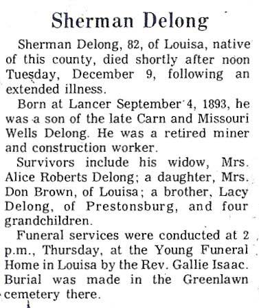 Age 79, of State Road Fork, Prestonsburg, died Tuesday, December 10, 2002, at Highlands Regional Medical Center, Prestonsburg. Born January 18, 1923, in Floyd County, he was the son of Albert Dotson and Anna Lee Wells Dotson. He was a former coal miner (Princess Elkhorn Coal Company, at David), a grocery store owner and merchant, and a World War II Army veteran. He was a member of the V.F.W., a member of the Middle Creek Volunteer Fire Department, Middle Creek Sportsmen Club, and a lifetime member of the DAV, Big Sandy Chapter No. 18. He was preceded in death by his first wife, Irene Wright Dotson. He is survived by his wife, Mary Ann Lamb Dotson. Other survivors include one son, Larry D. Dotson of Prestonsburg; one daughter, Debbie (Deborah) Cline of Mount Sterling; two stepsons, Ricky Horn of Pikeville and Johnny M. Hunt of Lexington; one stepdaughter, Teresa Long of Danville; one brother, Orville Dotson of Prestonsburg; two sisters, Susie Burchett and Mable Honeycutt, both of Prestonsburg; two half-brothers, Sherman Dotson of Warsaw, Indiana, and Billy Joe Dotson of Prestonsburg; three half-sisters, Jean Rice of Banner, Laurie Marie Smith of Arkansas, and Cynthia Sue Hall of Ohio; five grandchildren, one great-grandson, and two step-grandchildren. He was preceded in death by two sisters, Hazel and Audrey Arnett; two half-brothers, Jack Dotson and William Thomas Dotson; two half-sisters, Zona Douglas Combs and Mary Stevens. Funeral services will be conducted Friday, December 13, at 2 p.m., at the Carter Funeral Home Chapel, Prestonsburg, with Rev. Vernon Slone officiating. Burial will be in the Highland Memorial Park, Staffordsville. Military graveside services will be conducted by the Big Sandy Chapter No. 18 of D.A.V. Carter Funeral Home is serving the Dotson family. Pallbearers: Members of the Middle Creek Volunteer Fire Department. (FCT'S)