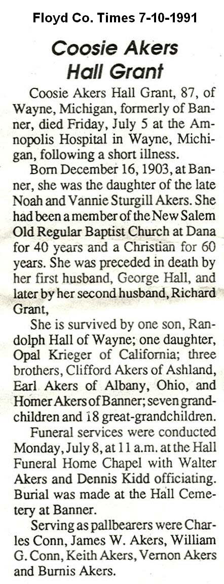 and a grandson, McDouglas "Dougie" Whicker Jr. Funeral Service for Anna Floyd Skaggs Griffith