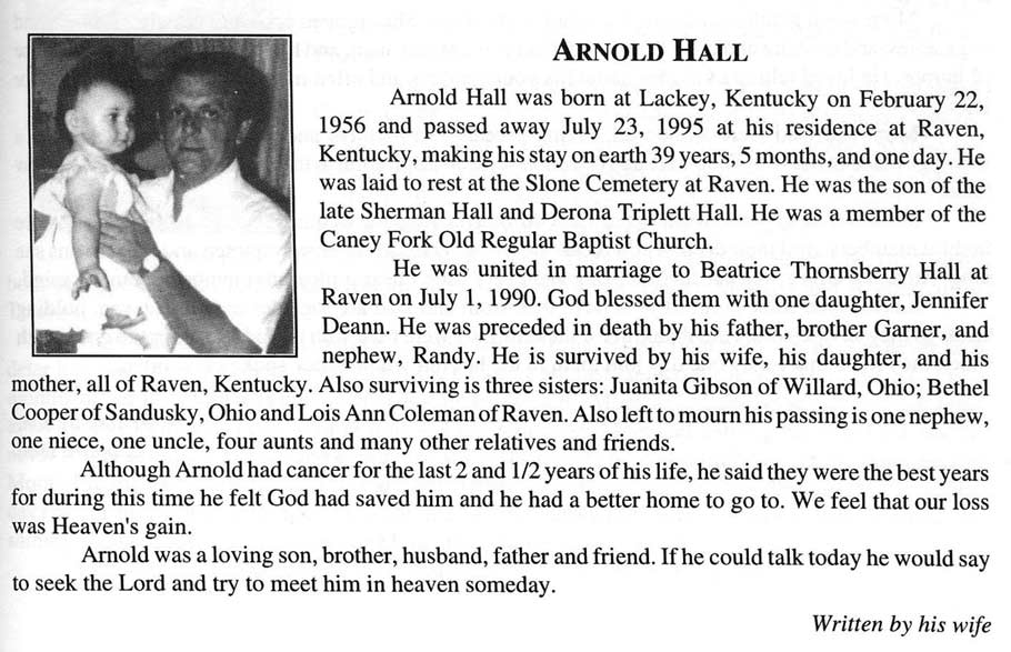 b. 05-26- 1967 d. 11-26 1990 s/o Whirley & Pauline Adkins Hall, burr: Dry Creek, Knott Co