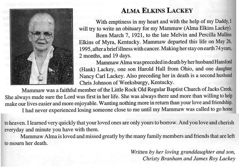 LACKEY, Alma Elkins