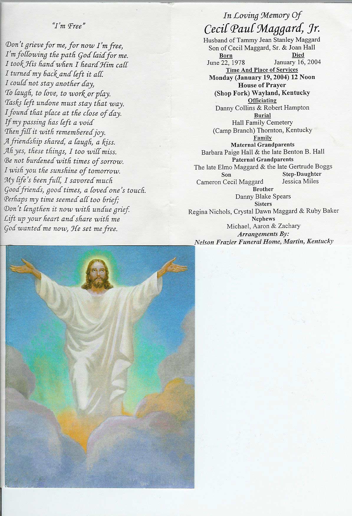 Age, 45, of Allen, died Friday, January 17, 2003, in Ohio. Born December 29, 1957, in Martin, he was the son of the late Ethel Manns (natural mother); and adoptive parents, the late Tom and Sally Ellen Manns. (He was blessed to have two mothers.) He was a disabled laborer. Survivors include two sons, John Wayne Manns of Wayland, and Christopher Lee Manns of Prestonsburg; two daughters, Louannie Birdie Manns and Monica Betty Louise Manns, both of Prestonsburg; four sisters, Verna Johnson, Deanna Reynolds, and Deborah Stephens, all of Allen, and Sophia Blackburn of Martin; and one granddaughter, Jeonna Tyshay Manns. In addition to his parents, he was preceded in death by one son, Thomas Ray Manns; three brothers, Mitchell Manns, James Manns, and Junior Manns; and five sisters, Edna Blackburn, Anita Manns, Ethel Manns, and two infants. Funeral services were conducted Tuesday, January 21, at 1 p.m., at the Nelson-Frazier Funeral Home in Martin, with Tom Blackburn, Henry Lewis and Denver Meade officiating. Burial was in the Hicks Cemetery at Hippo, under the direction of Nelson-Frazier Funeral Home. Visitation was at the funeral home. (FCT'S)