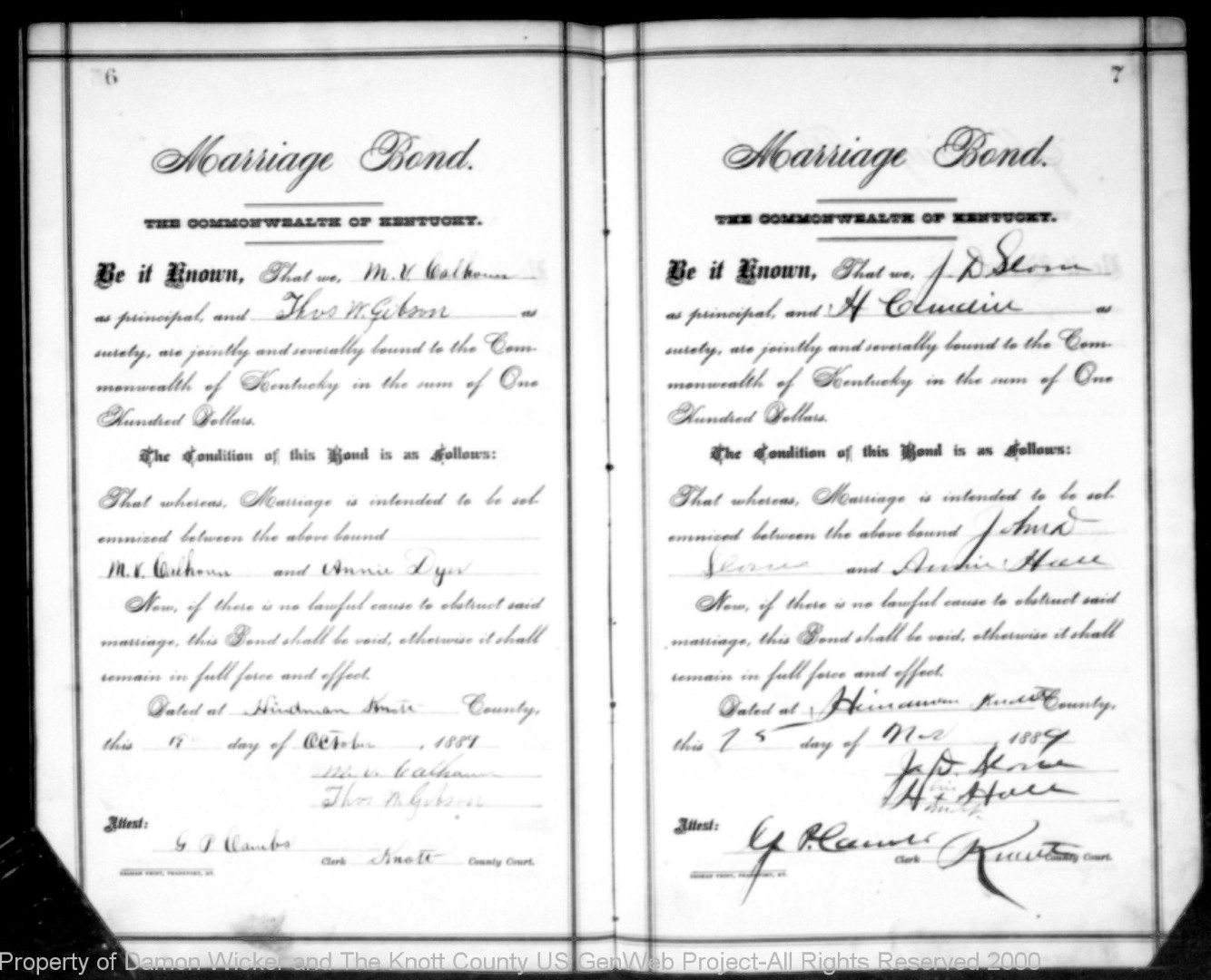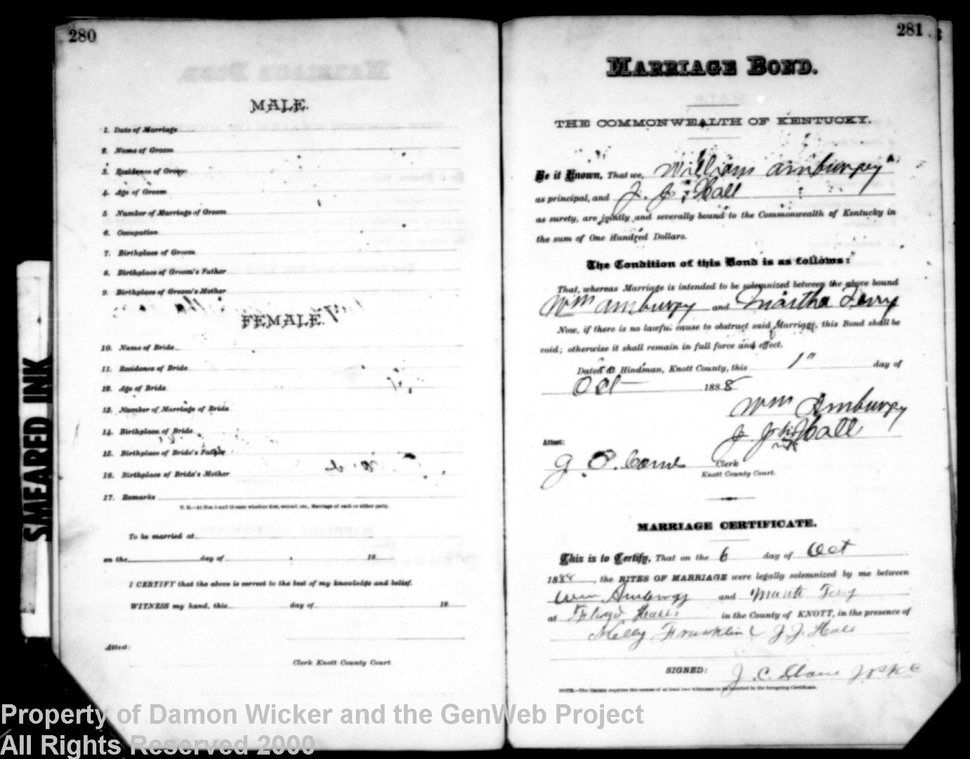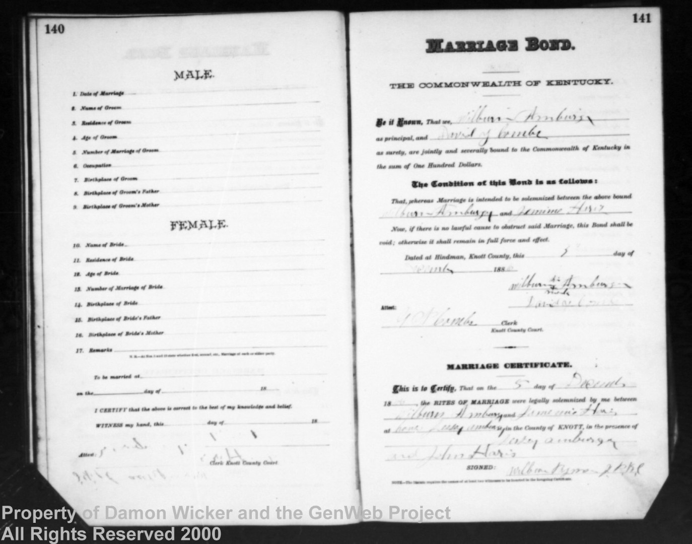 | Amburgey | Charlie | Clark | Sarah | 1890-01-30 | ||||||