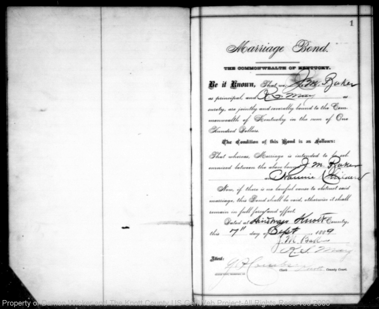 | ♥ | Baker | J M | Childers | Nannie | 1889-09-07 | |||||