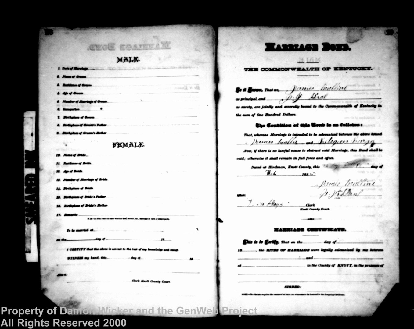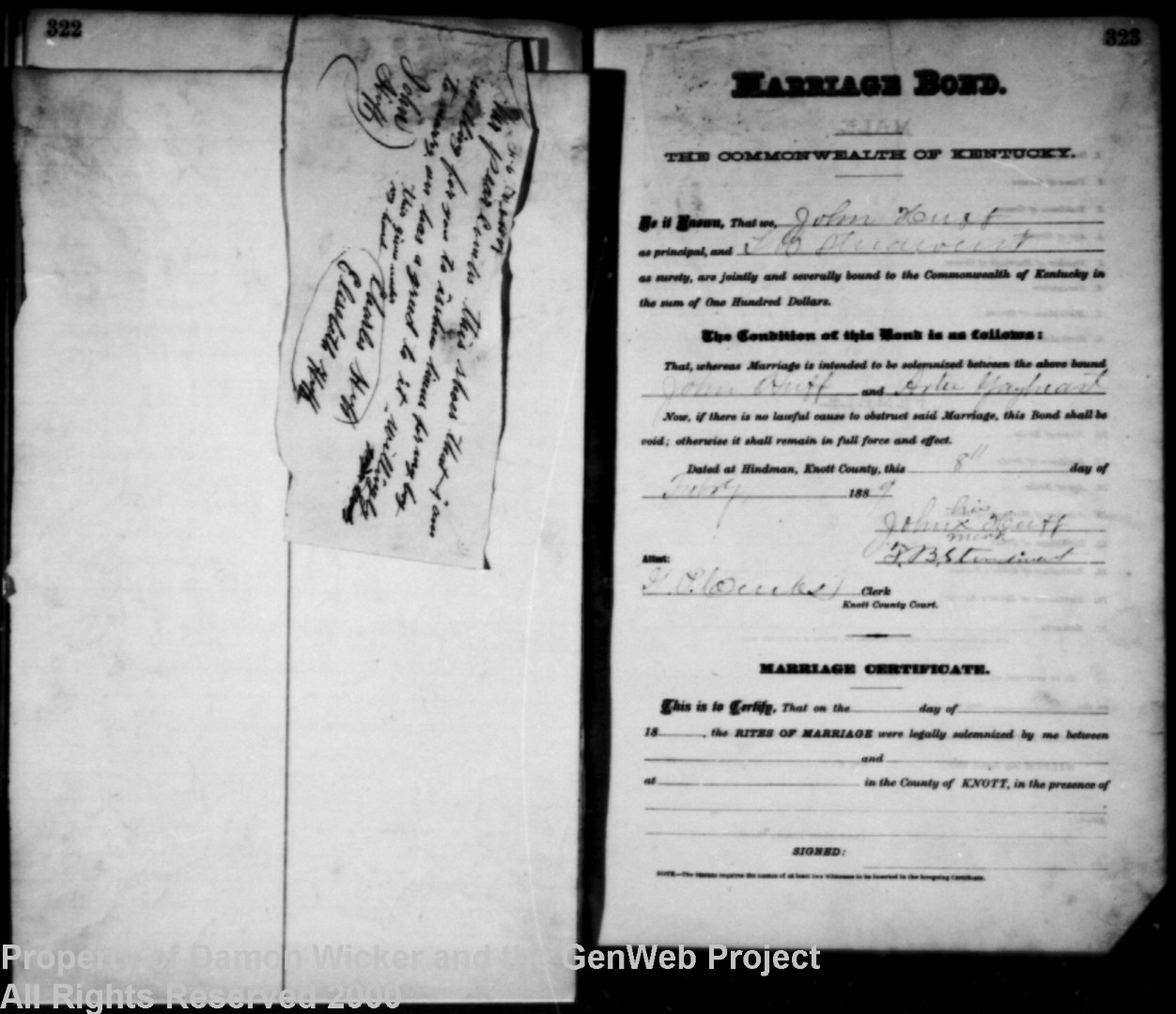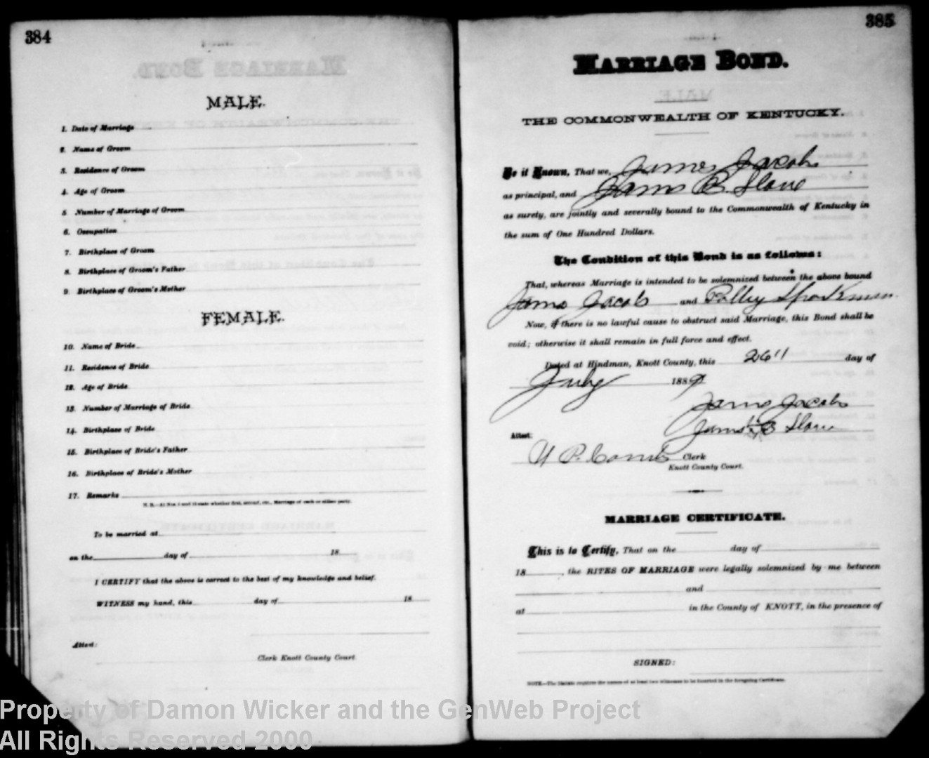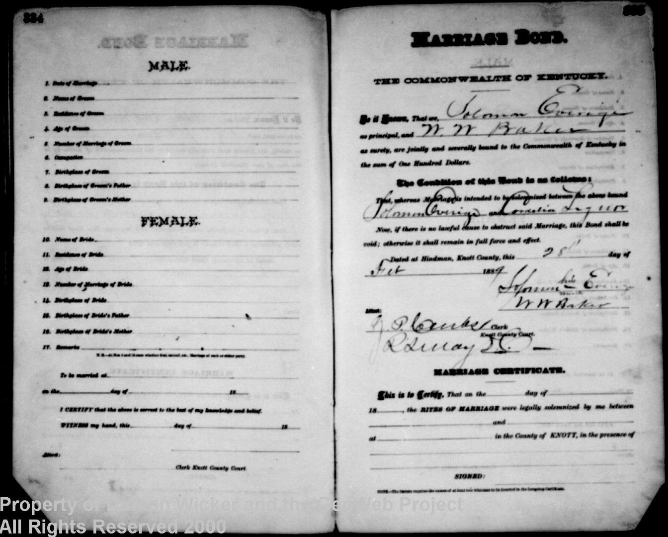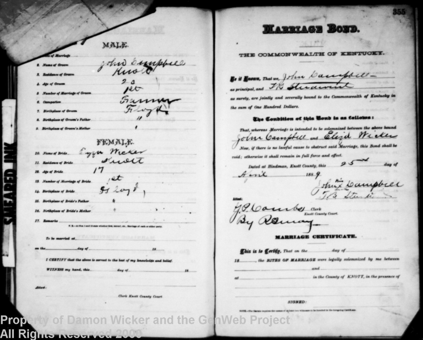 | Wicker | J B | Fugate | Louisa | 1898-09-24 | ||||||