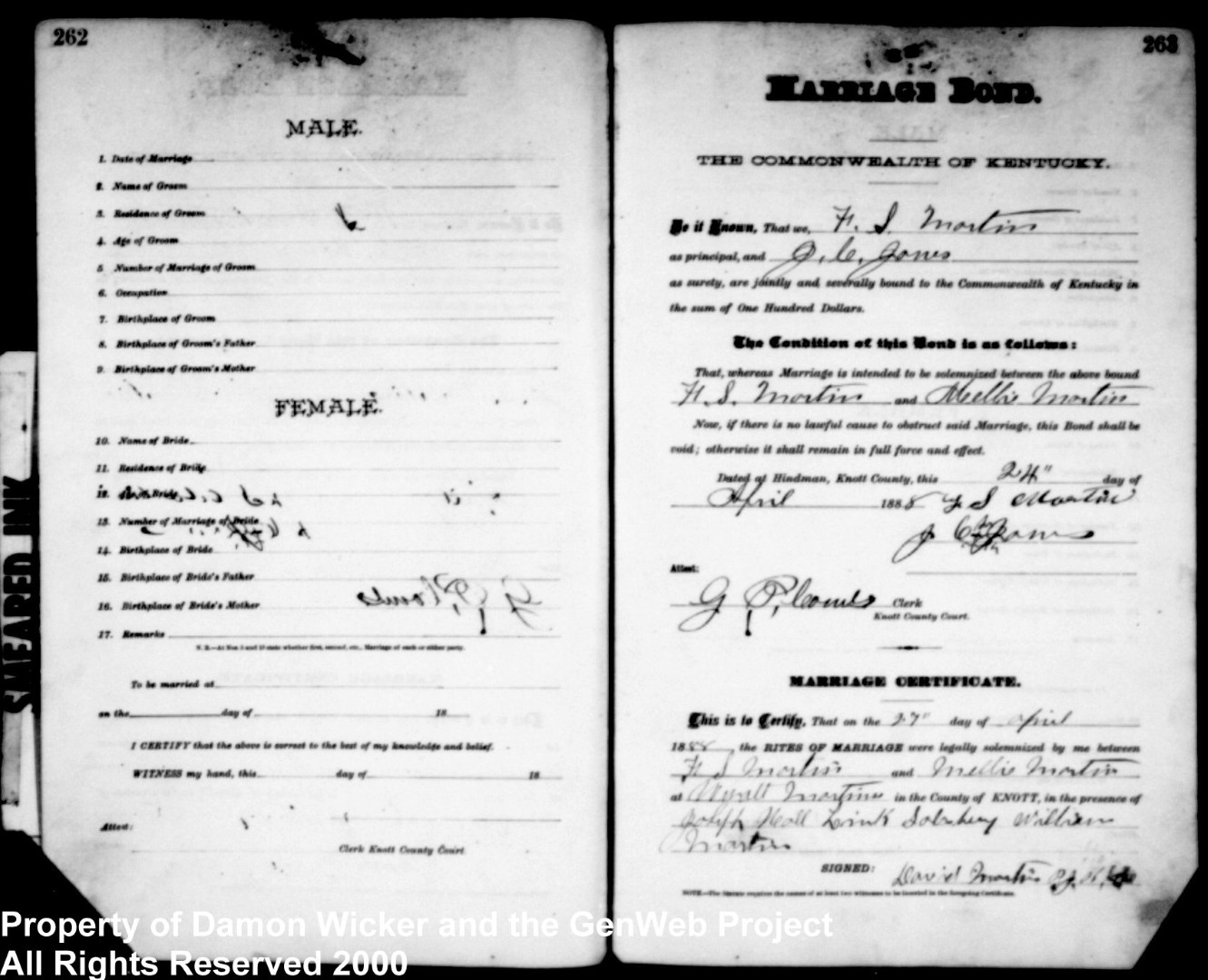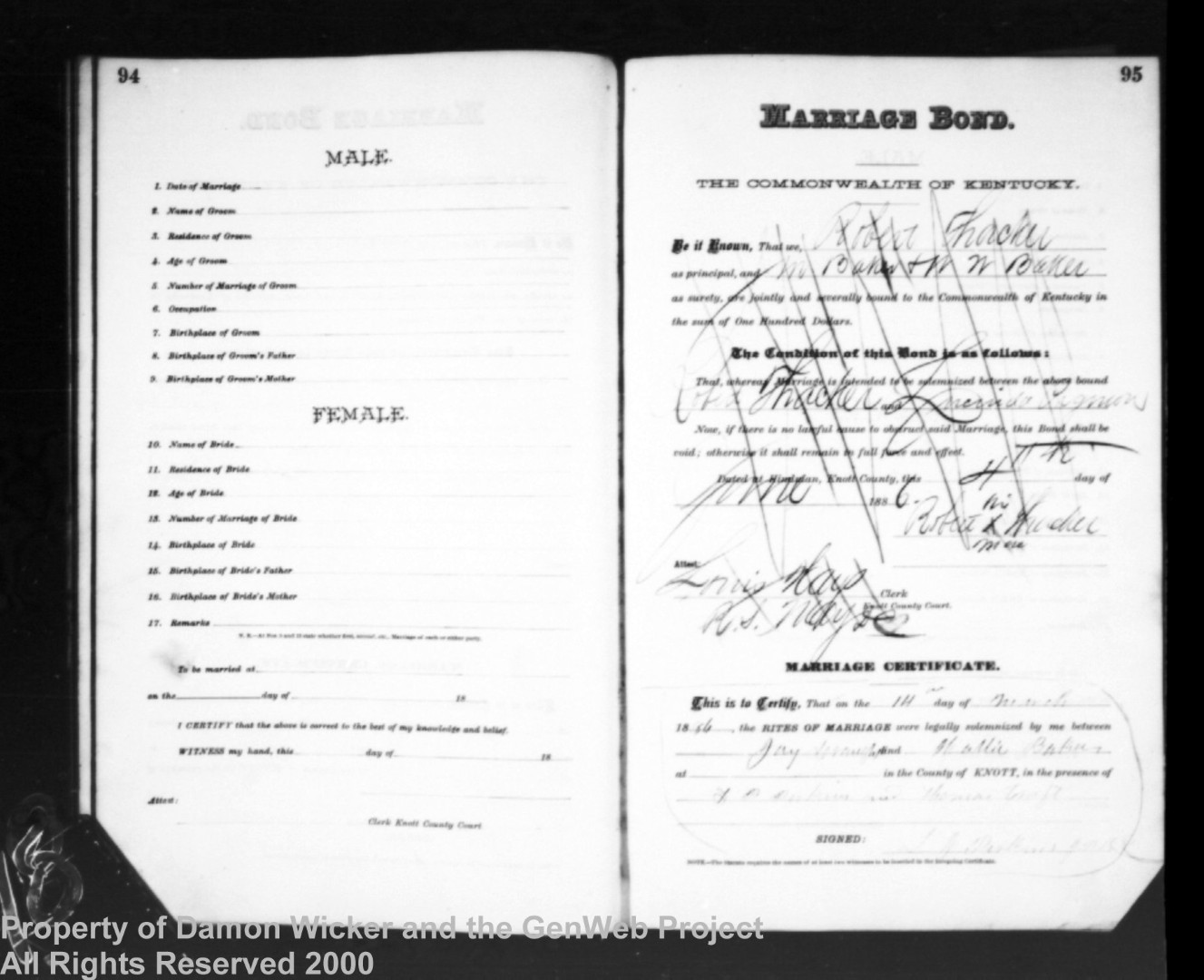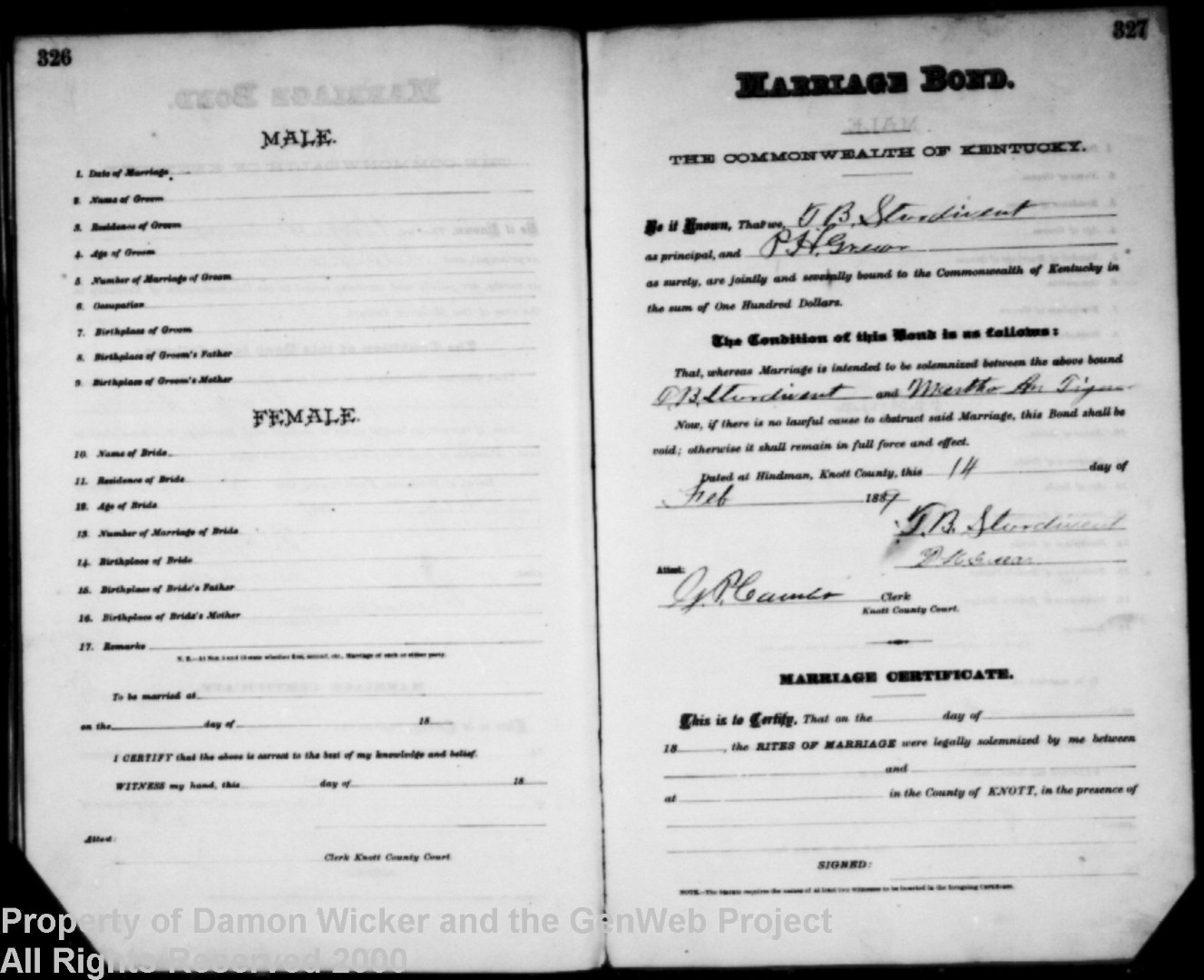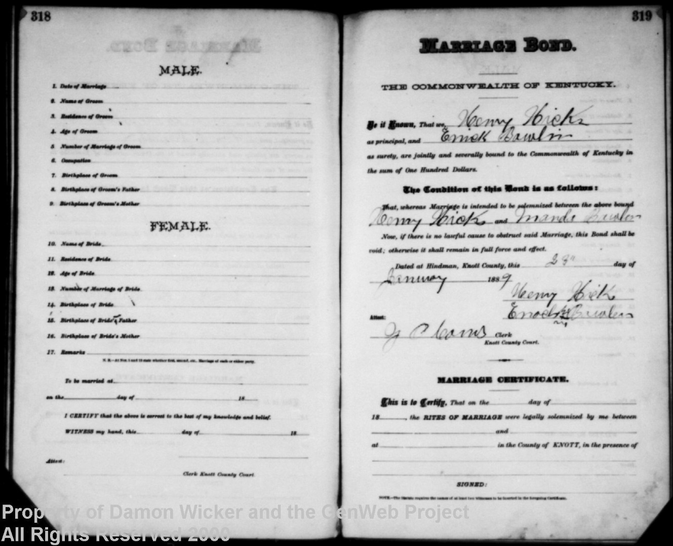 | Wicker | J B | Fugate | Louisa | 1898-09-24 | ||||||