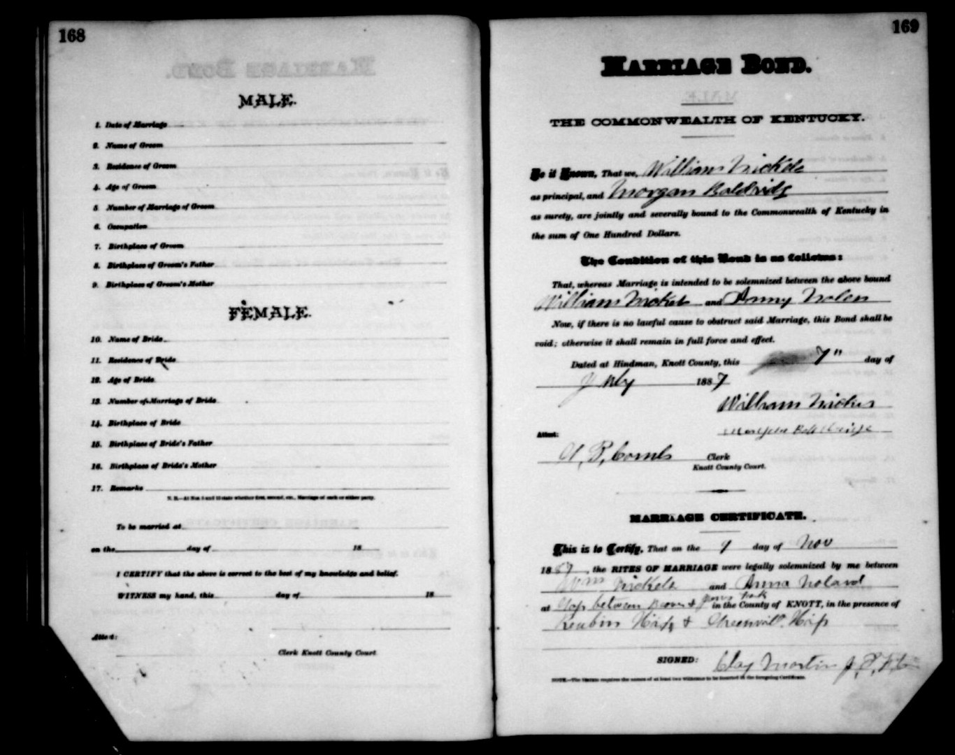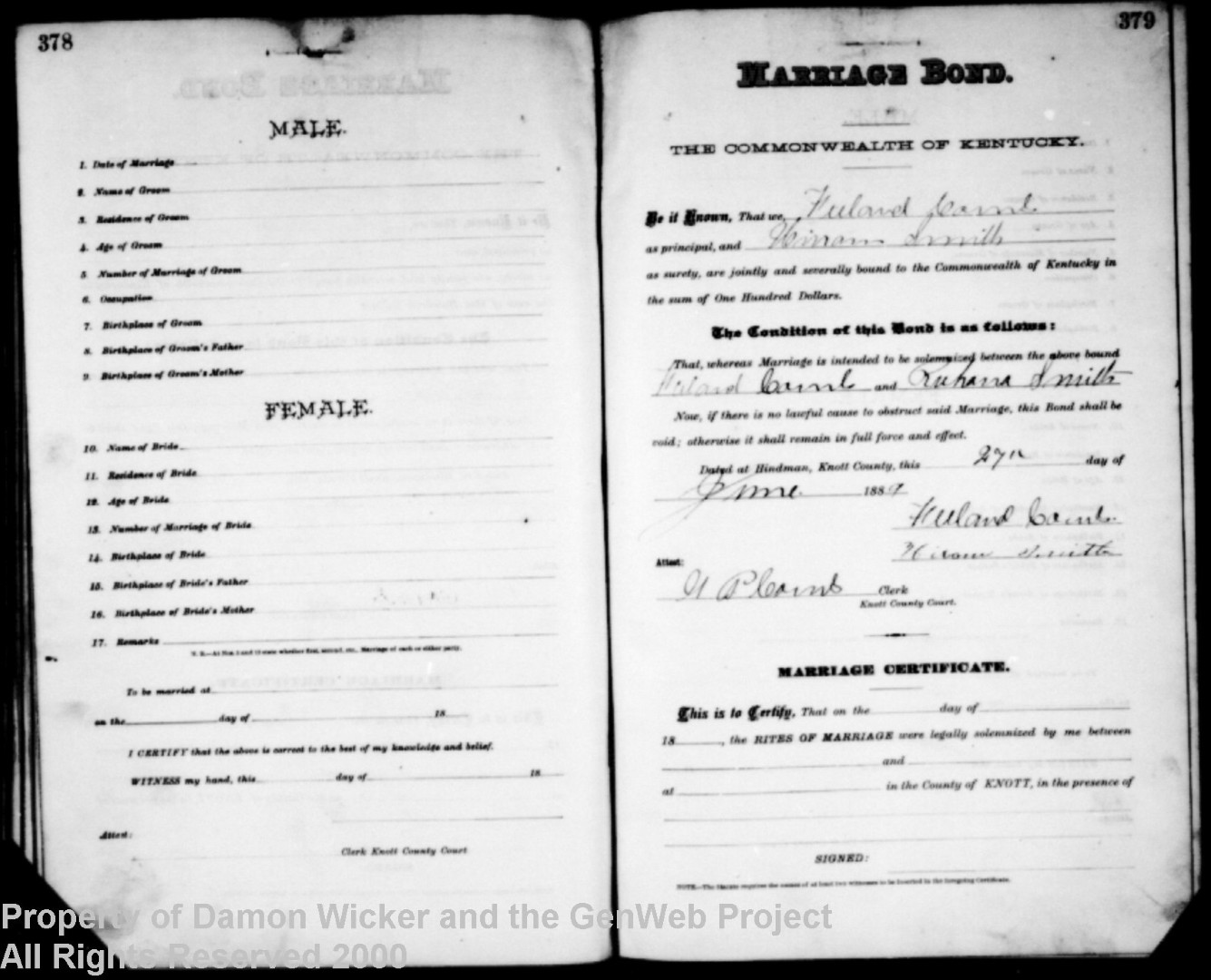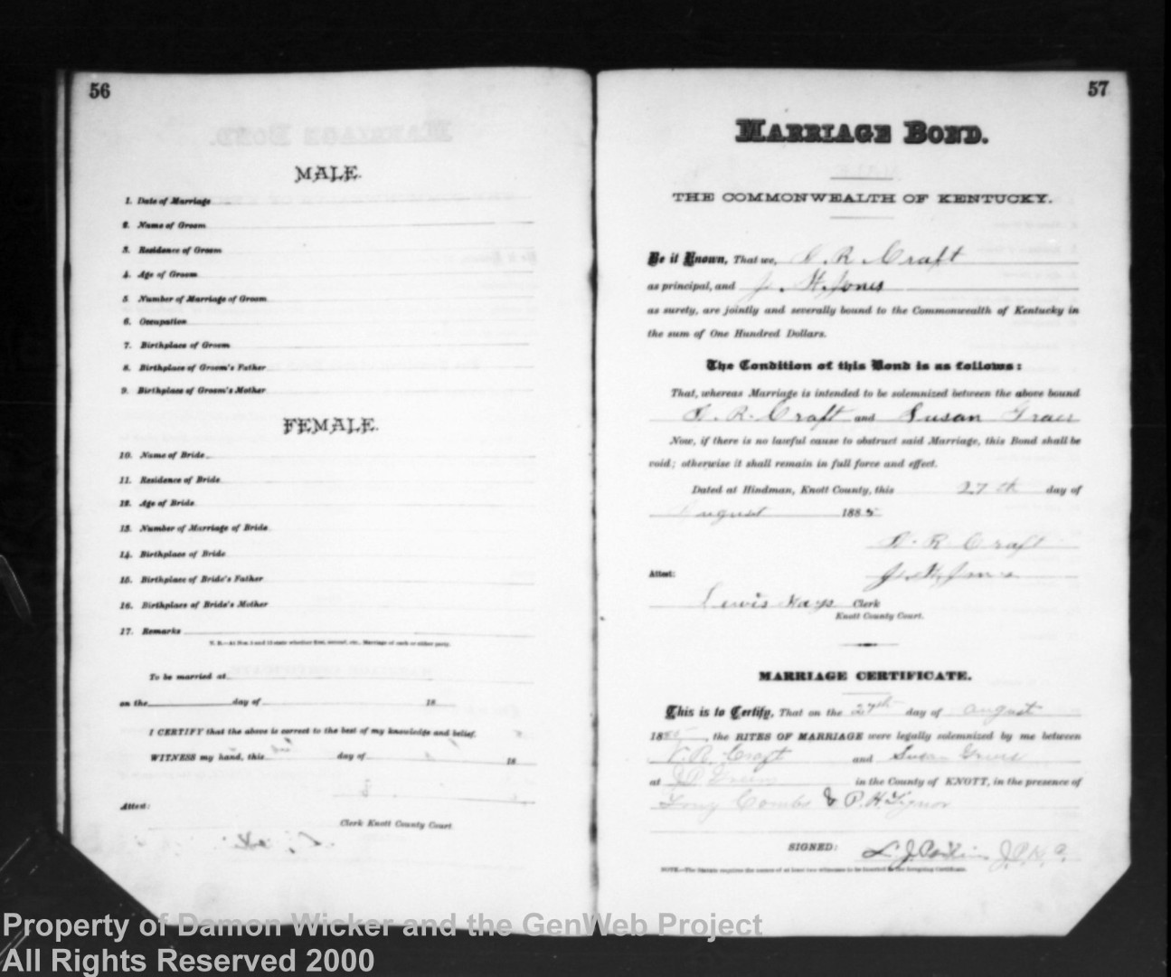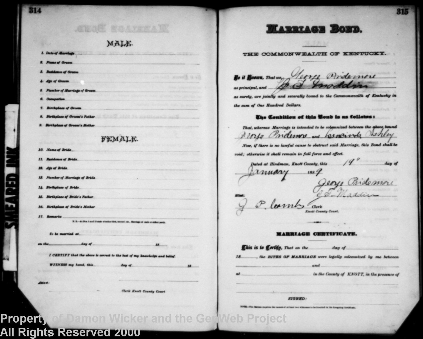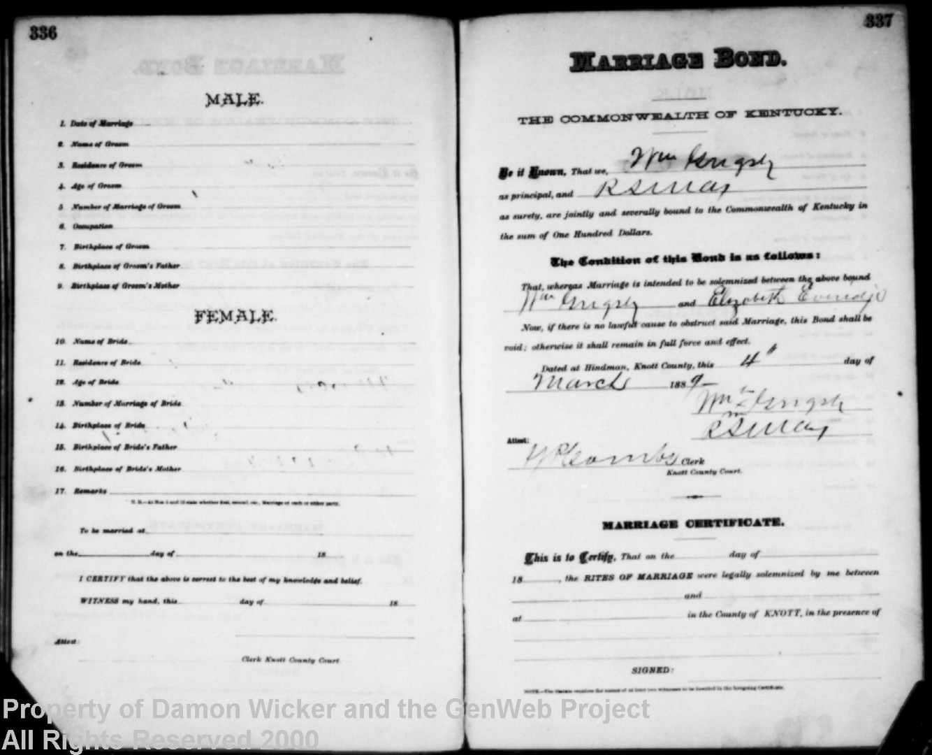 | Wicker | J B | Fugate | Louisa | 1898-09-24 | ||||||