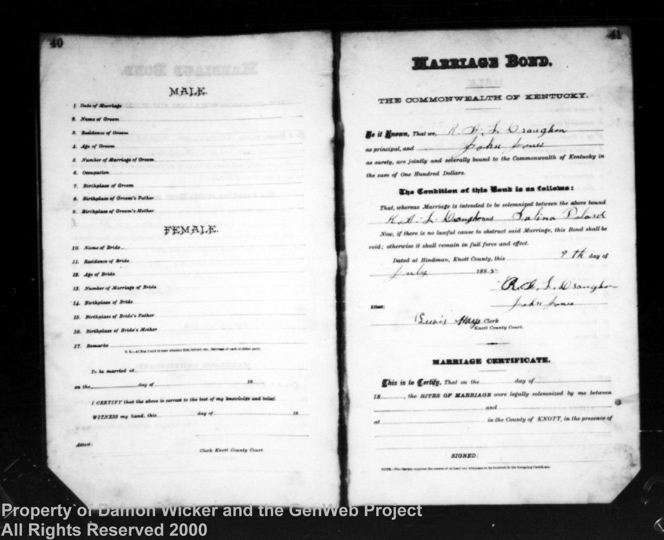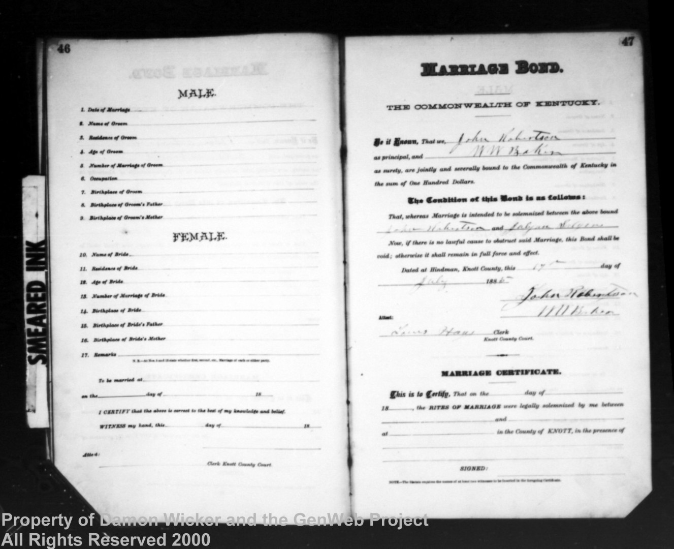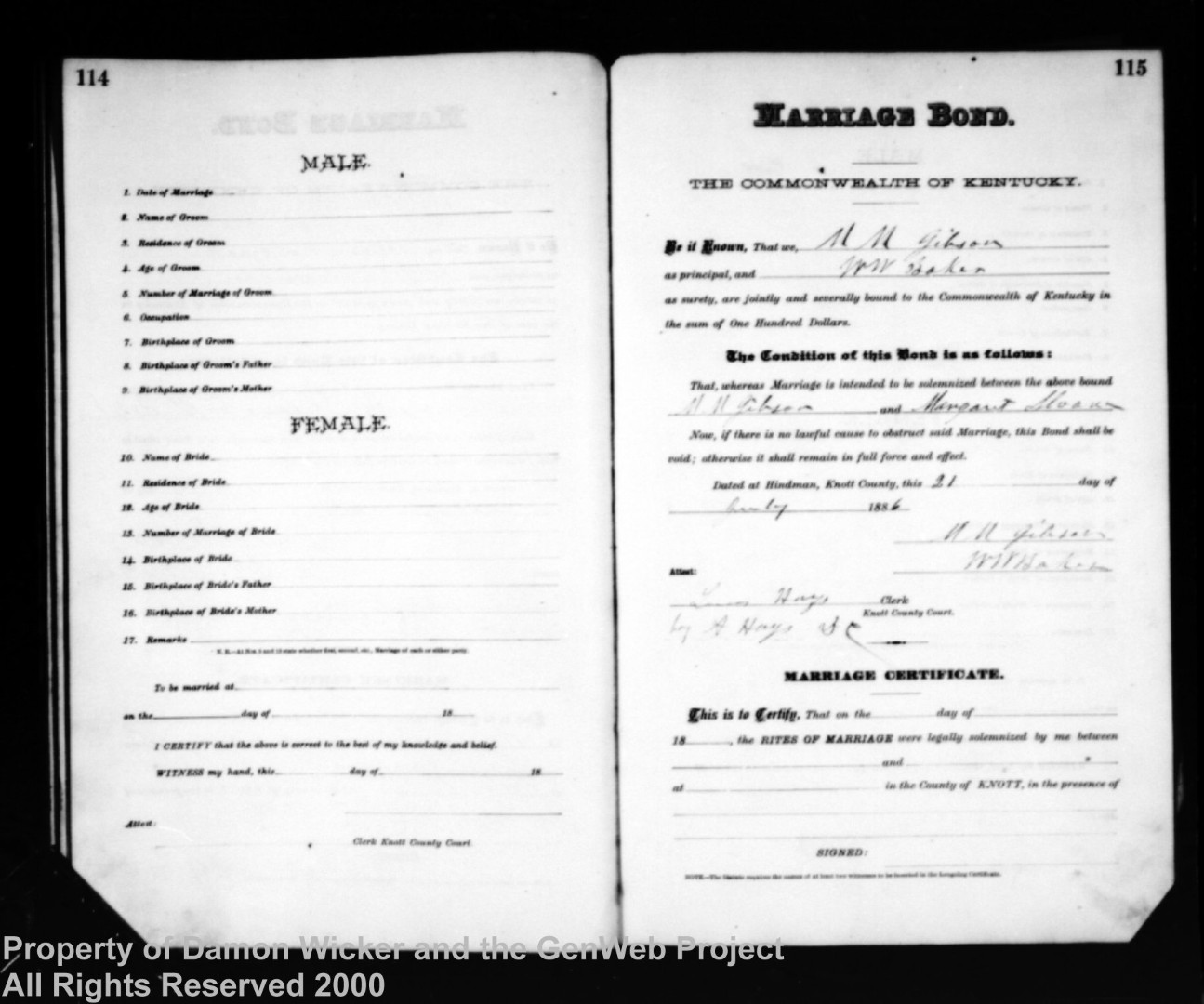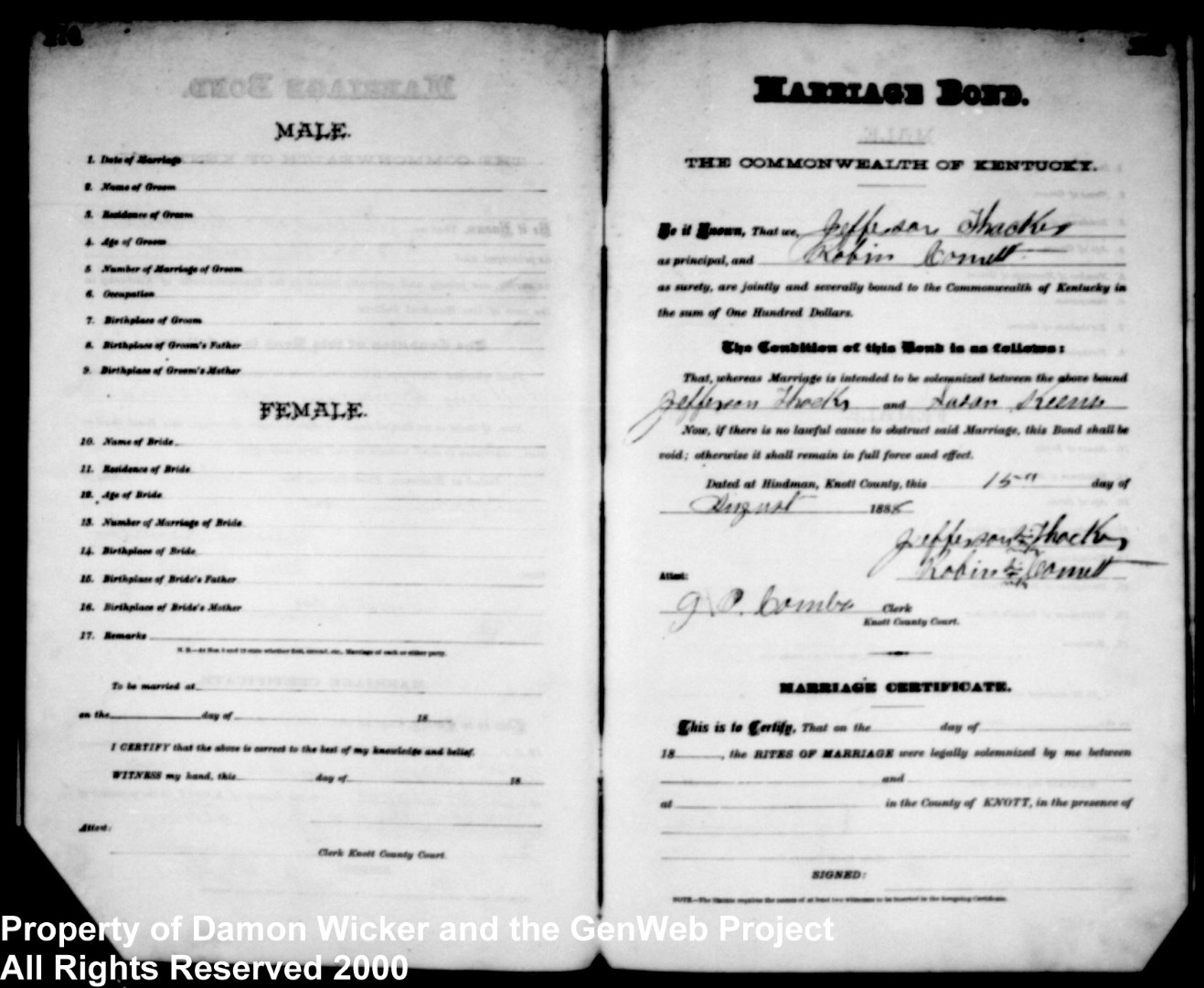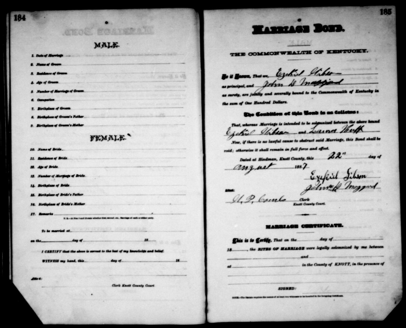 | Wicker | J B | Fugate | Louisa | 1898-09-24 | ||||||