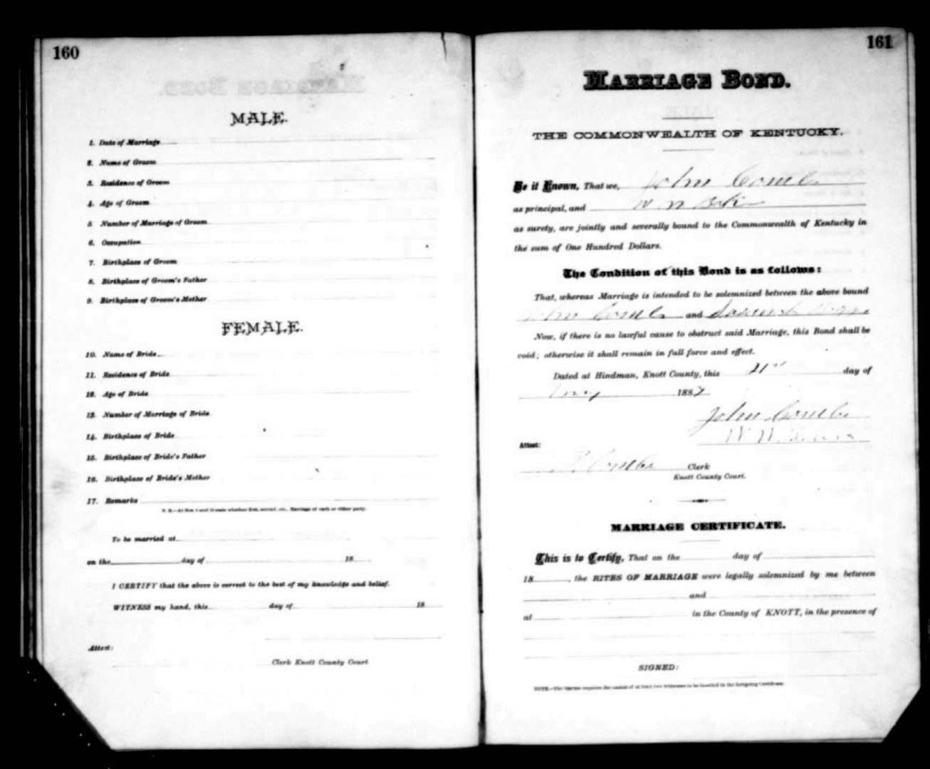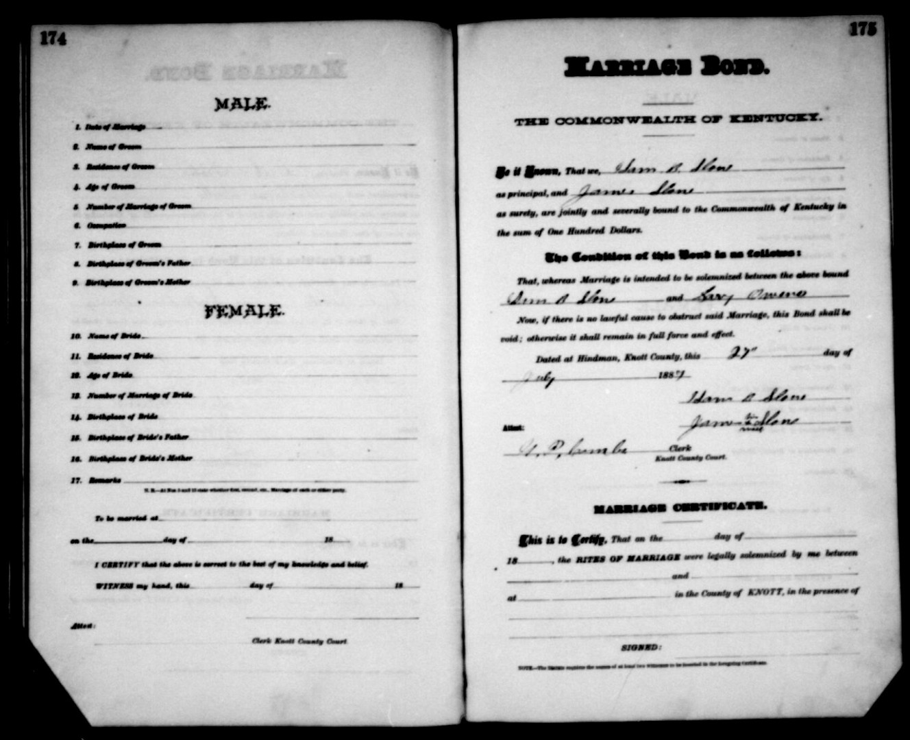 | Collins | JamesW | Amburgey | Nancy Jane | 1890-04-05 | ||||||