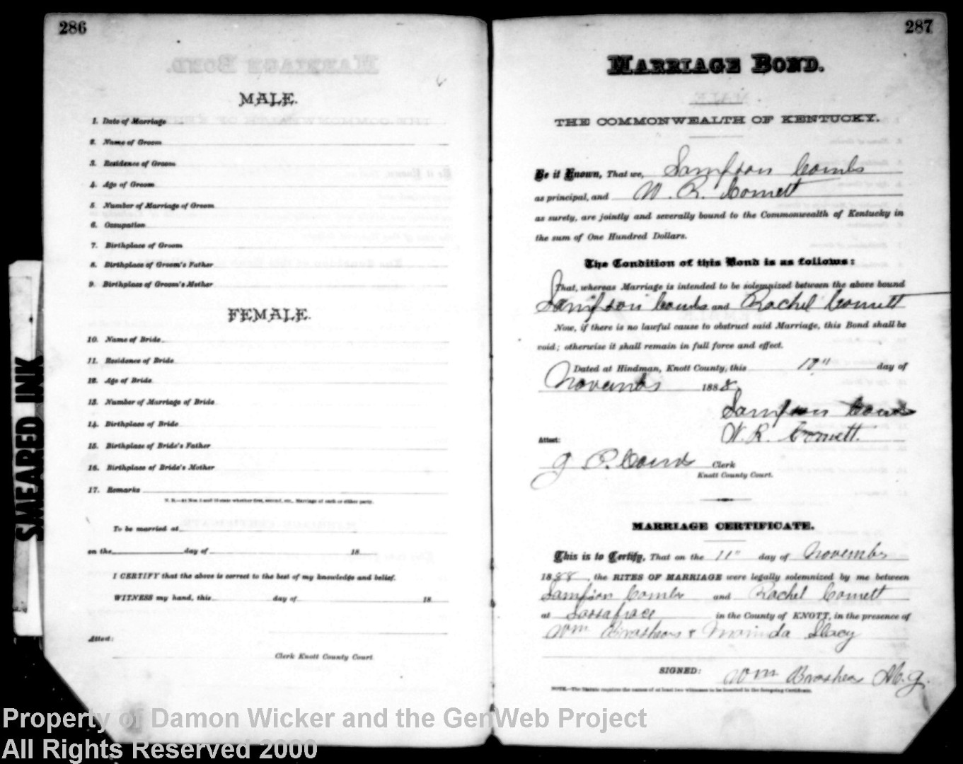 | Combs | WilliamD | Fugate | Arta | 1898-05-27 | ||||||