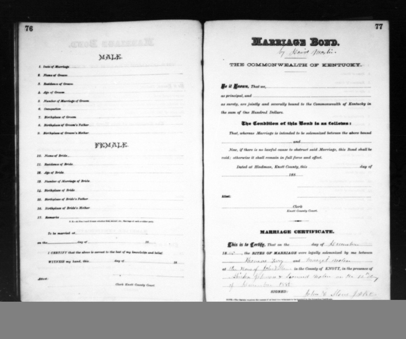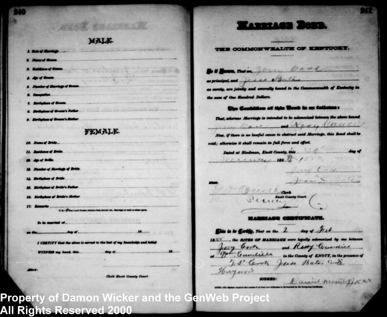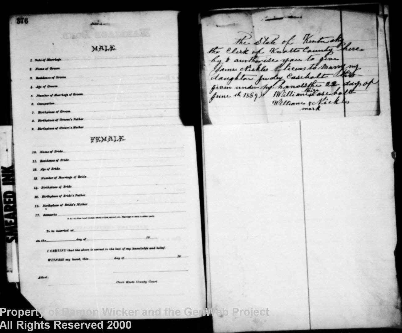 | Casebolt | William | Mullins | Sarah Ellen | 1890-09-16 | ***Permission Slip for Sarah*** | |||||