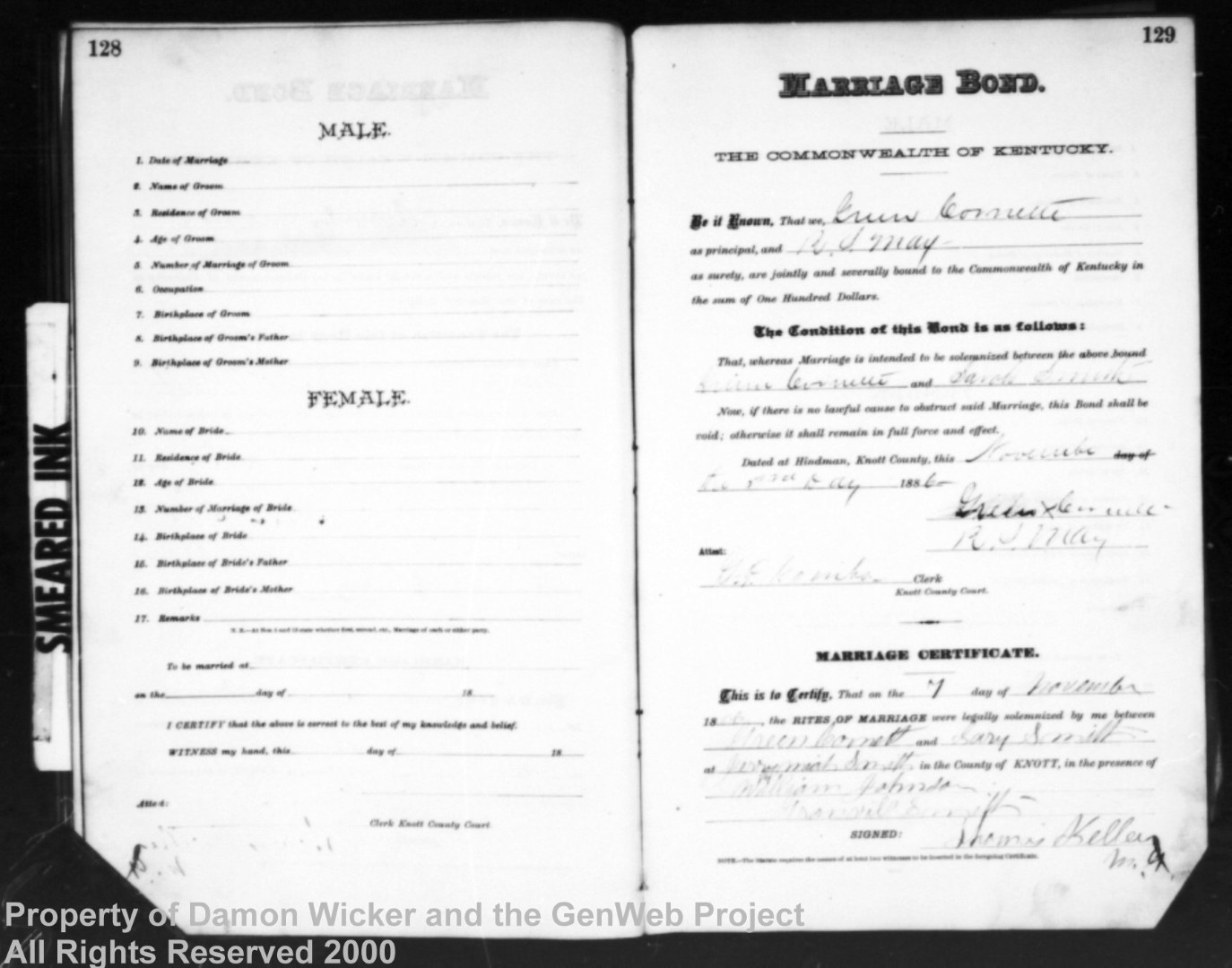 | Combs | William | Young | Martha | 1891-08-05 | ||||||