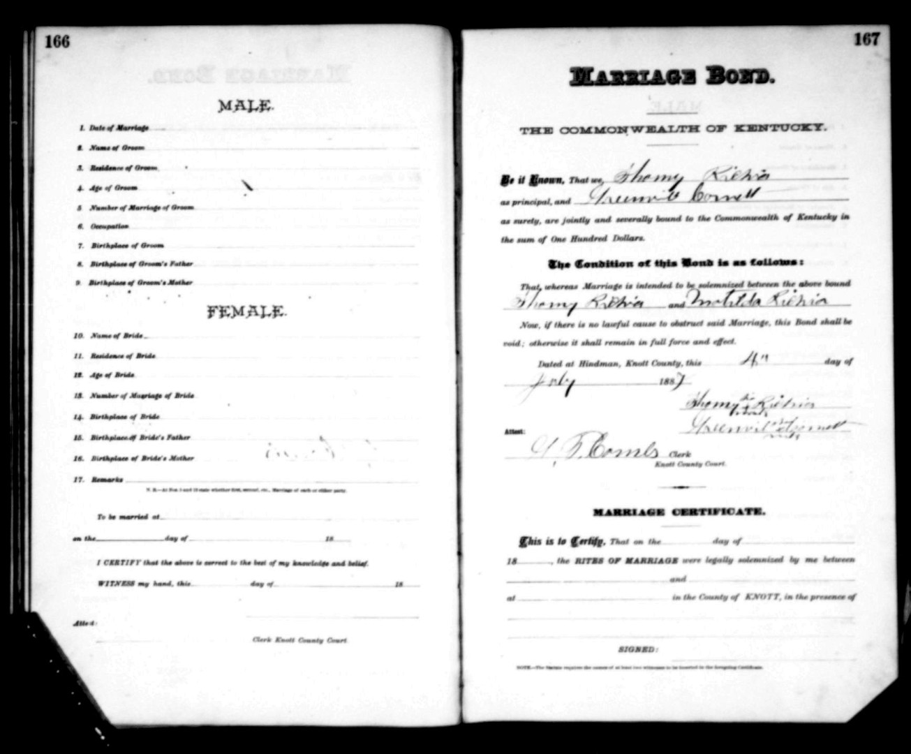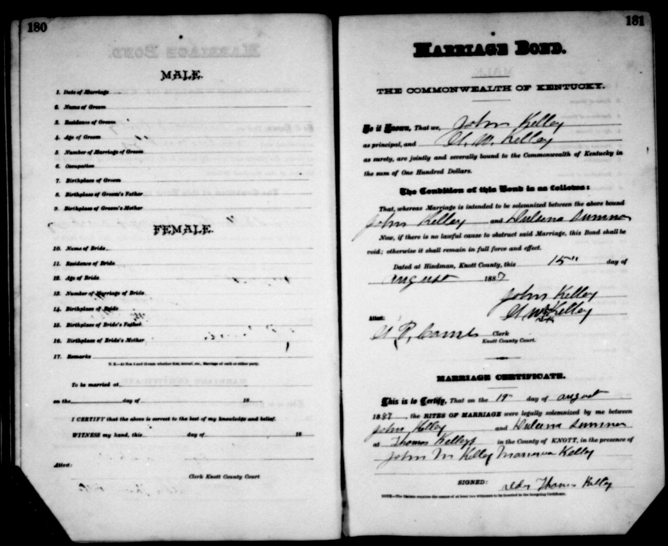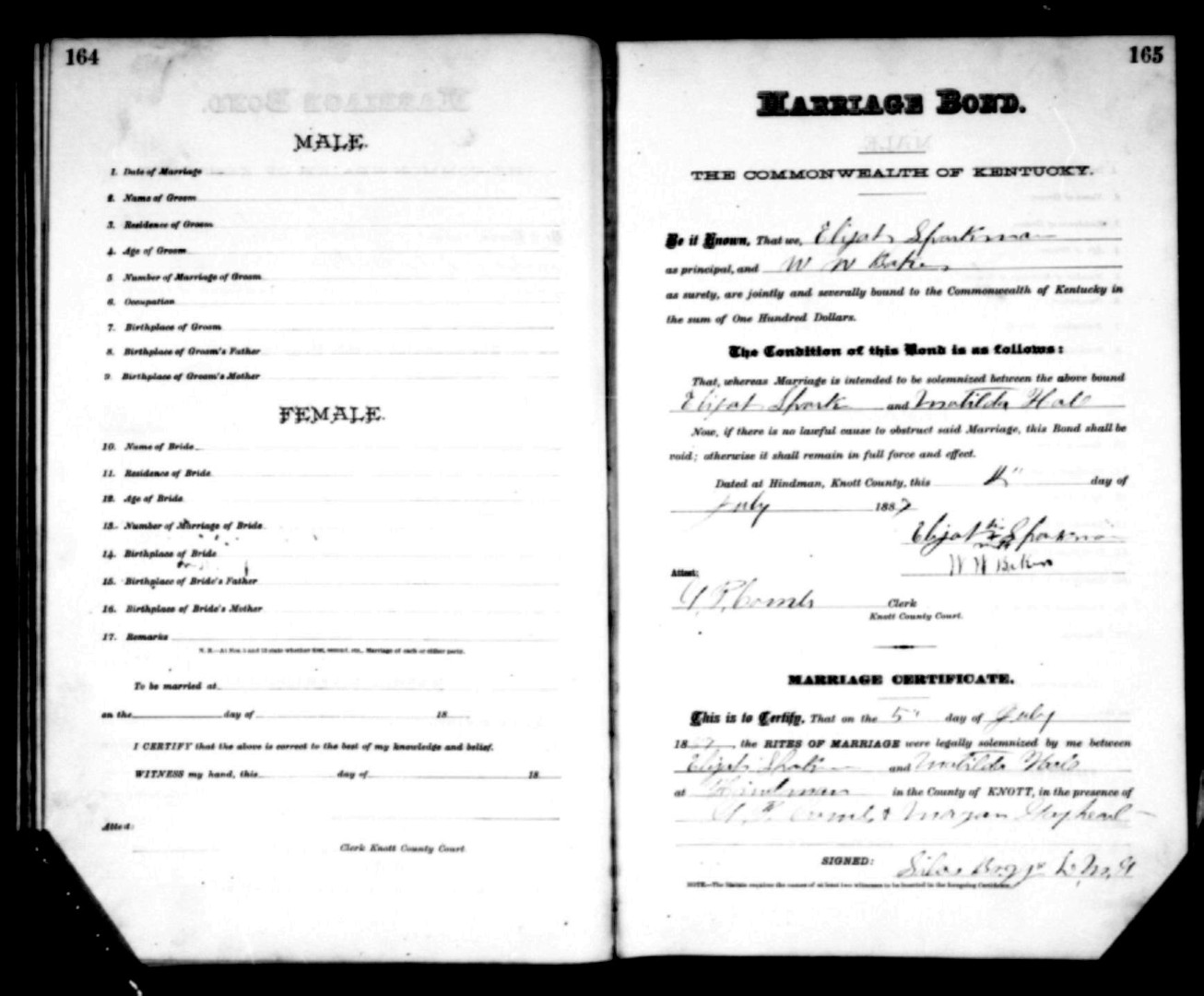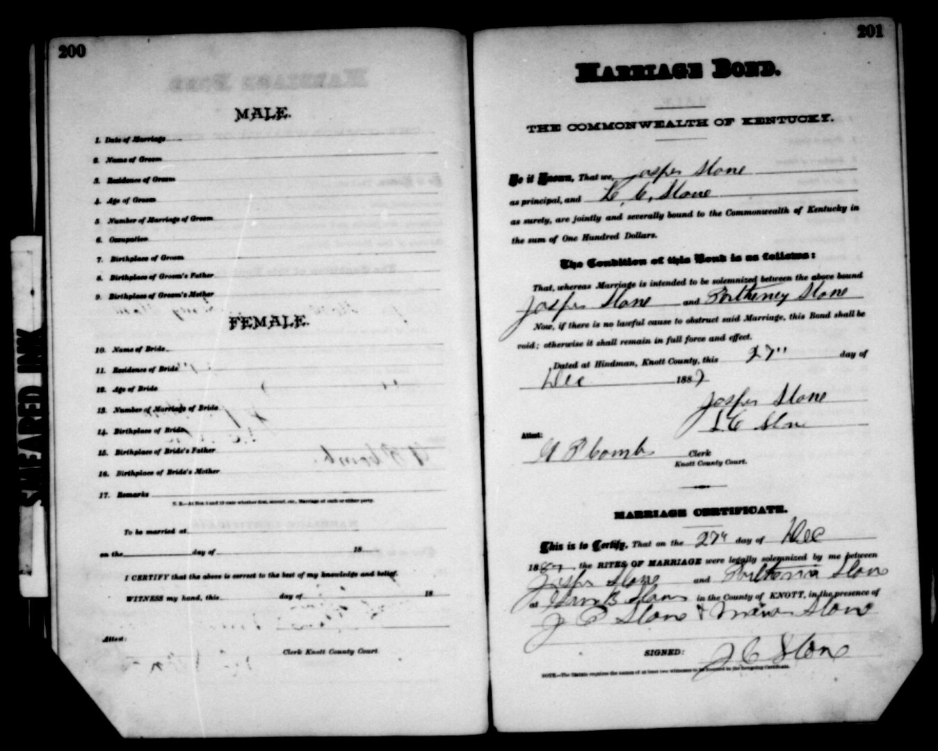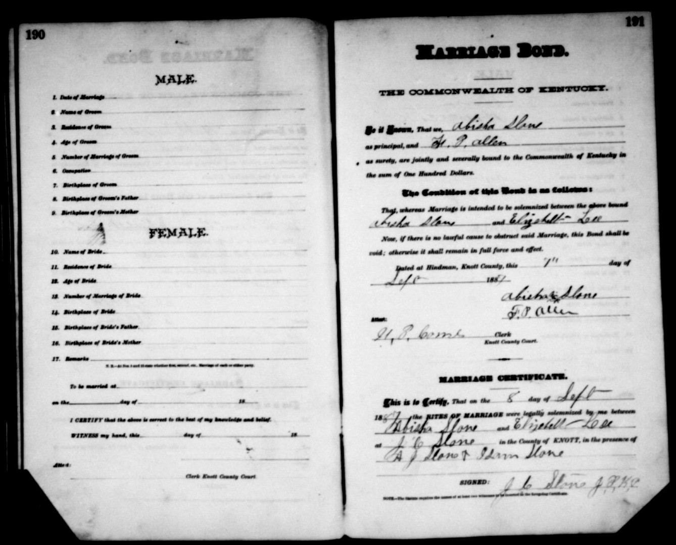 | Singleton | Henry | Combs | Elizabeth | 1890-08-29 | ||||||