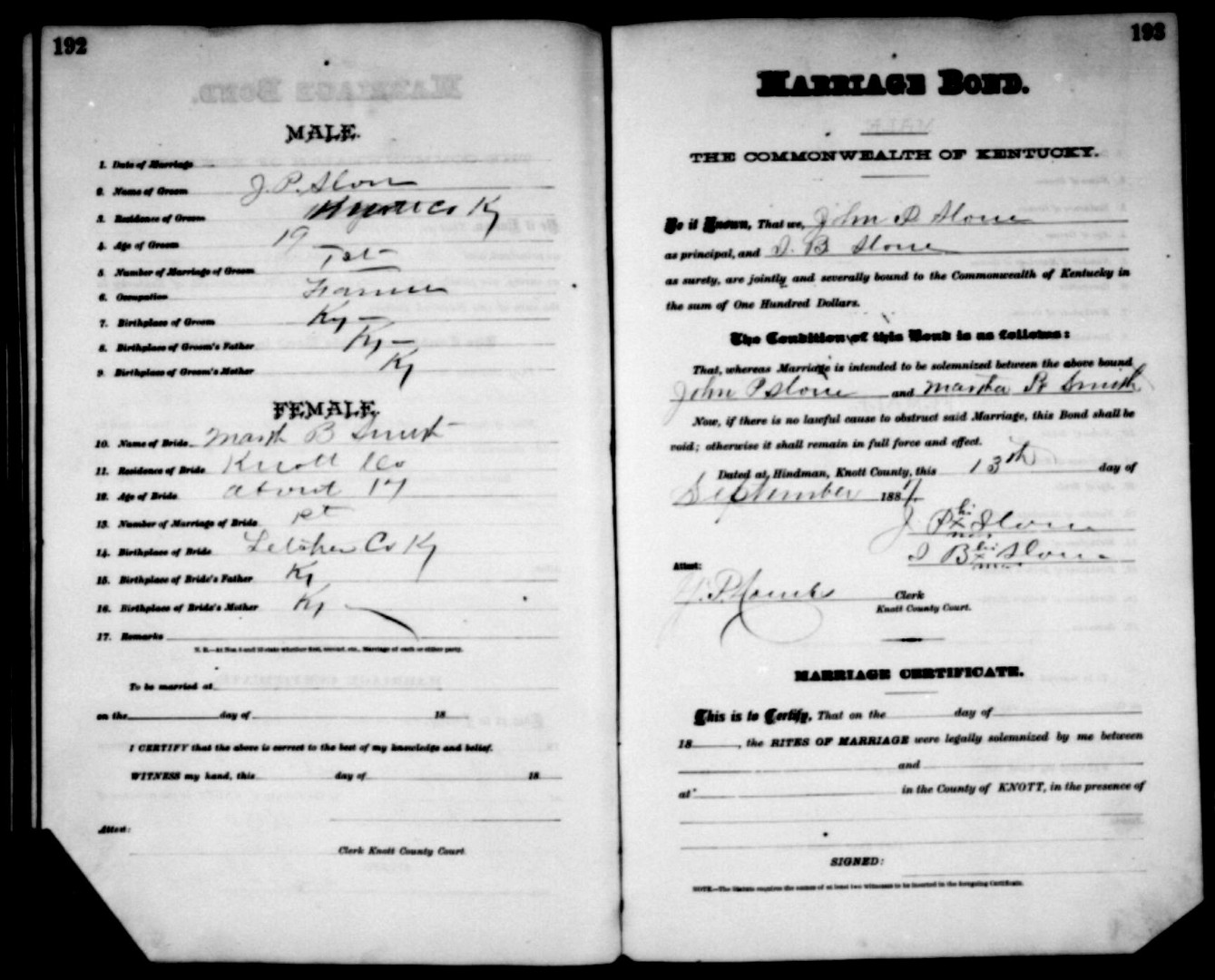 | Slone | JohnD | Hall | Annie | 1889-11-25 | ||||||