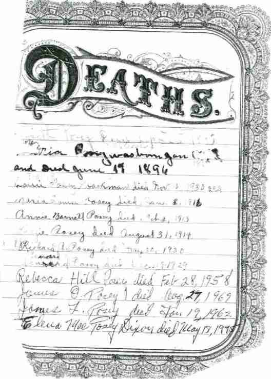 Posey Family Records Submitted by Gwili Posey See also Posey Family Group Sheet