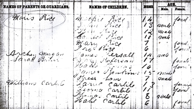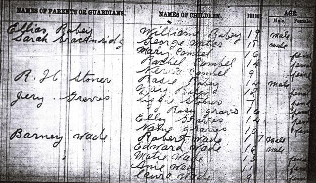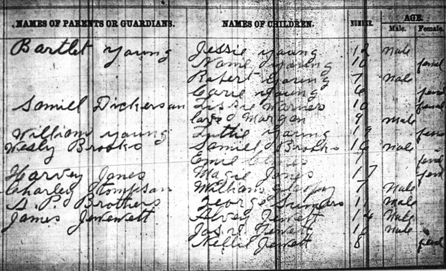 1895 School Census, Moorefield School (Col), Nicholas County Kentucky