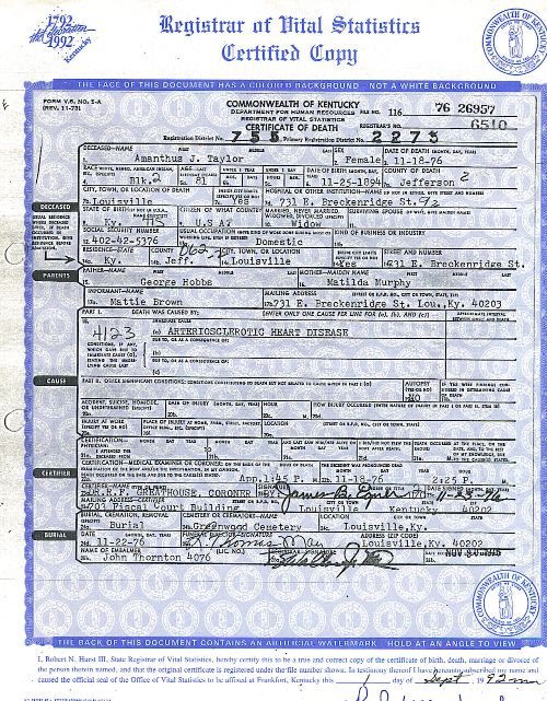 Place of Death: Louisville, Jefferson Co., KY