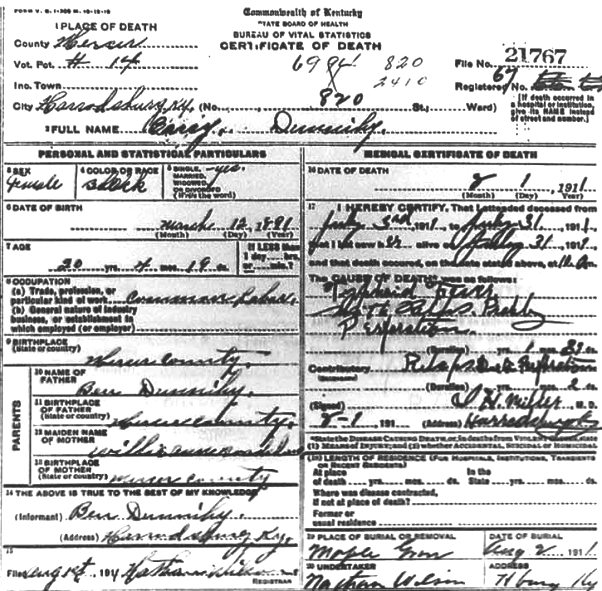 Comments and Corrections: KY Death Index lists this death as Oppie Dunniby.